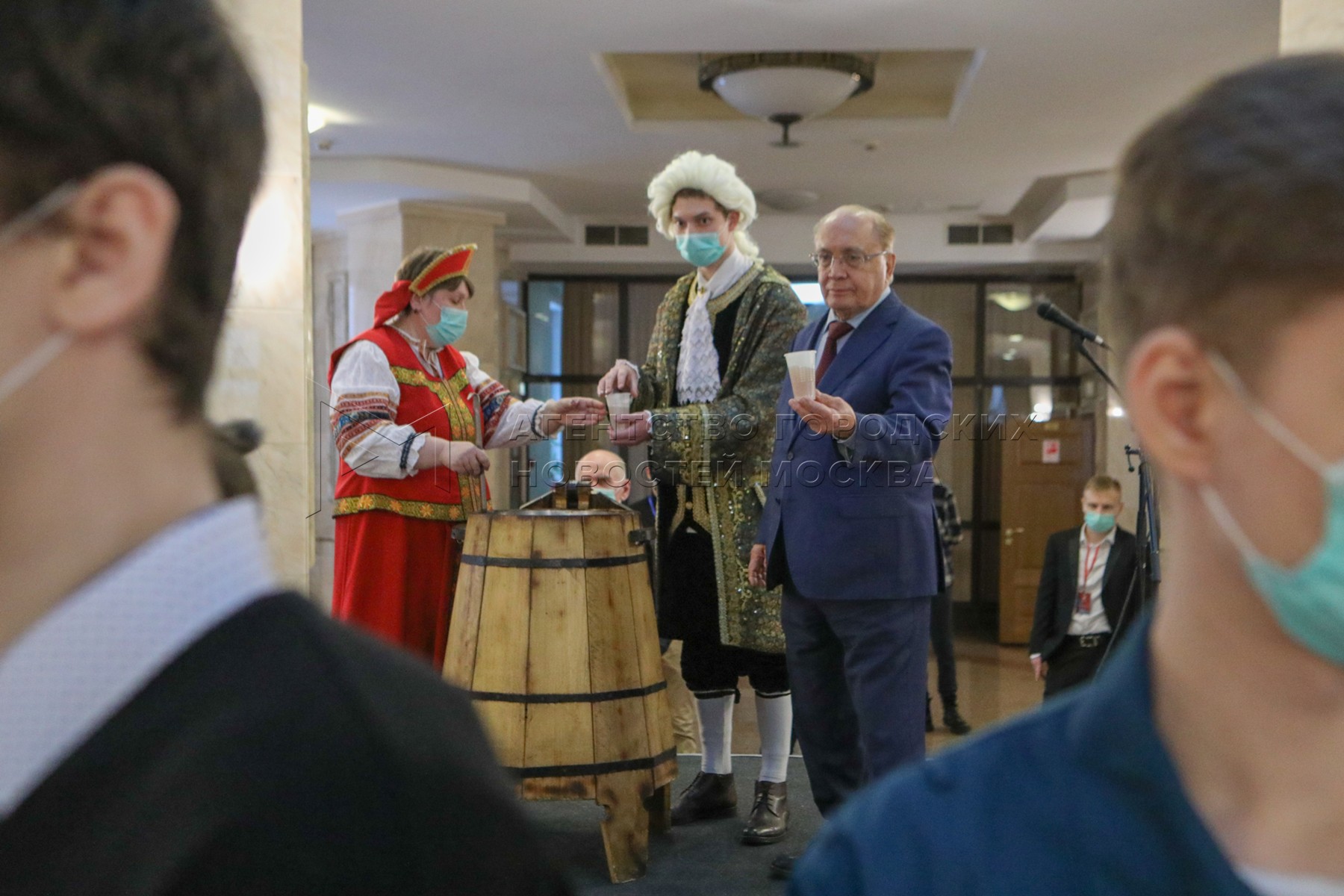 Профессор, академик РАН, ректор МГУ Виктор Садовничий (справа) во время традицион...