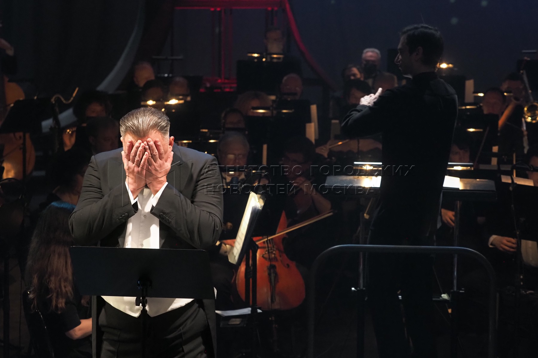 Оперный певец Алексей Тихомиров во время выступления на мемориальном вечере «Хран...