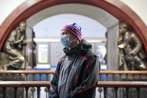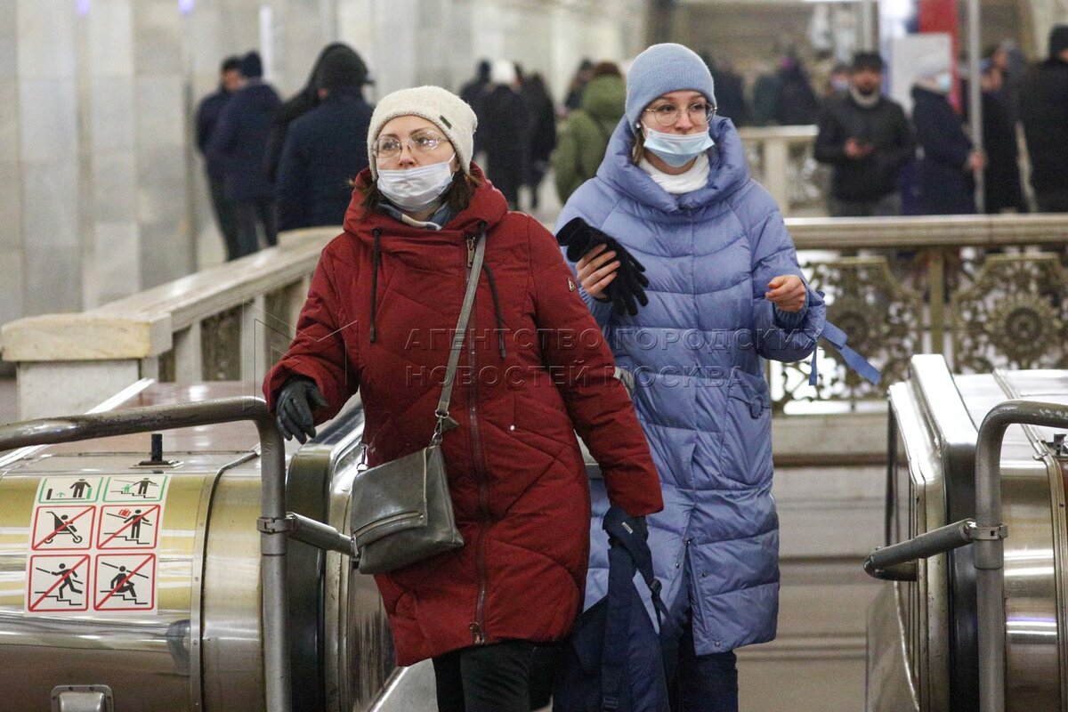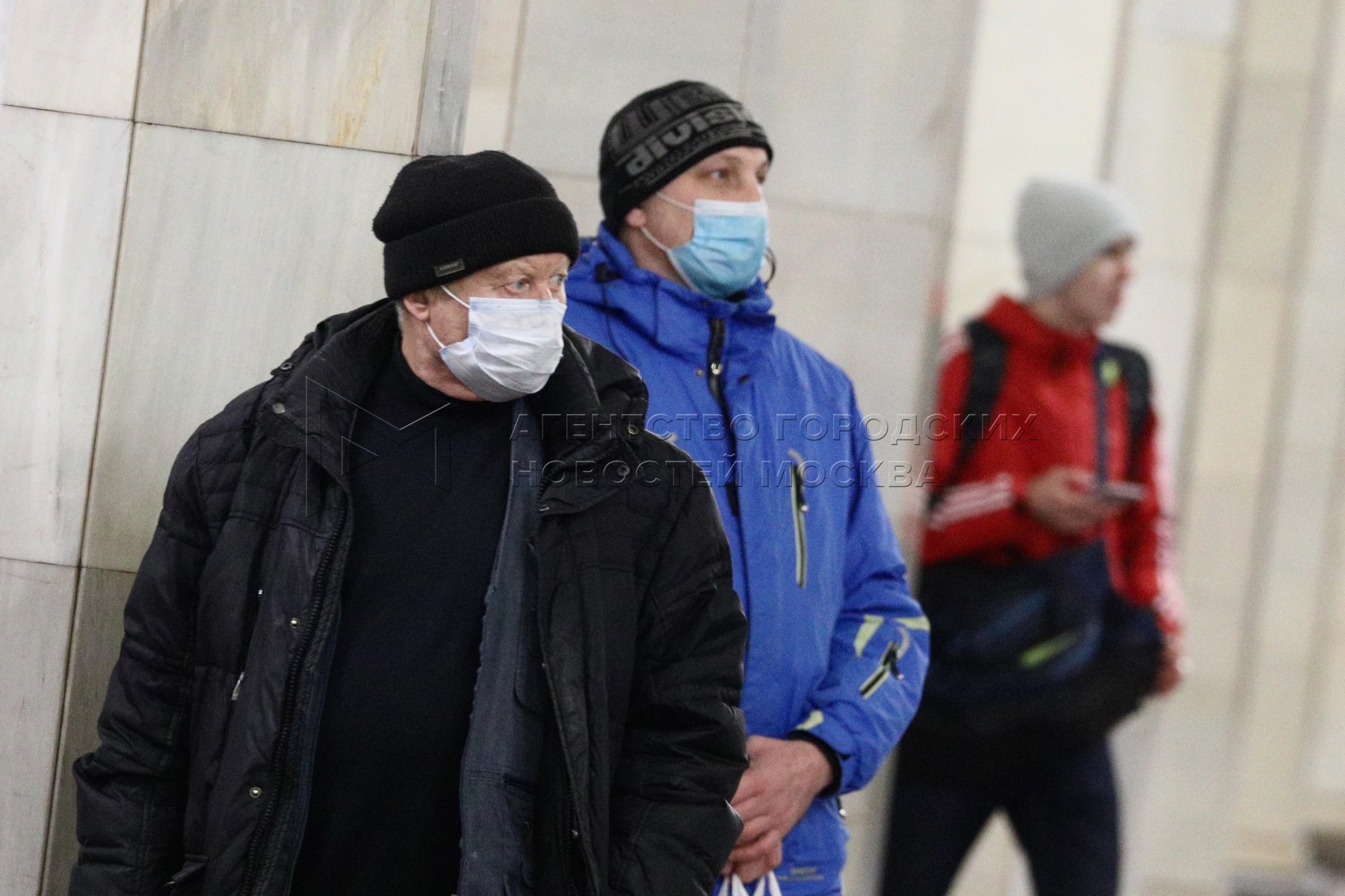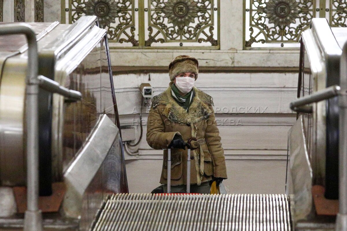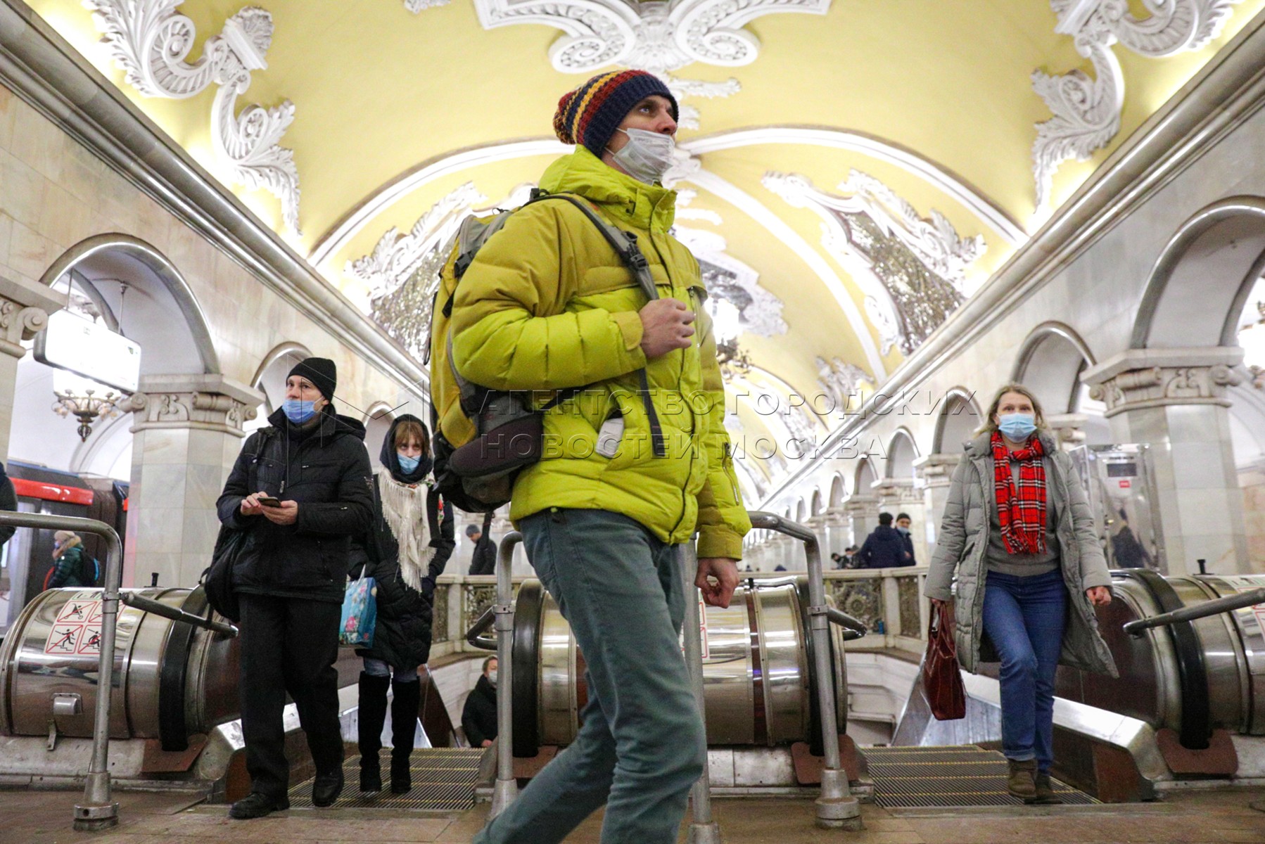 Соблюдение масочного режима пассажирами в Московском метрополитене.