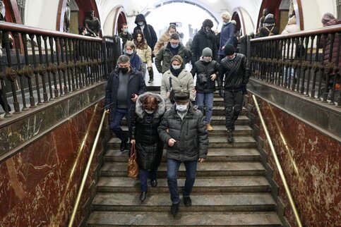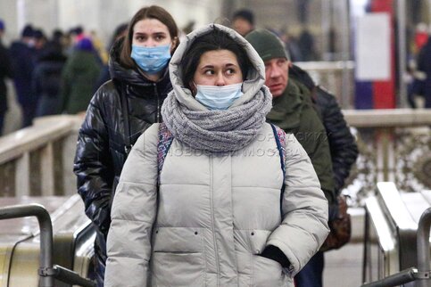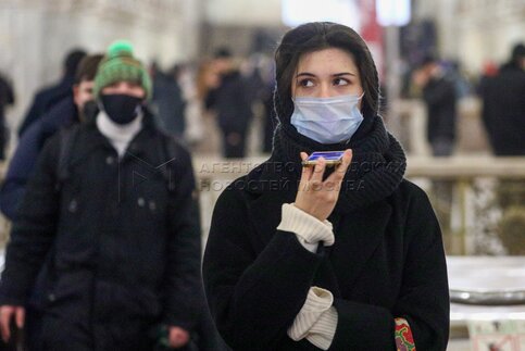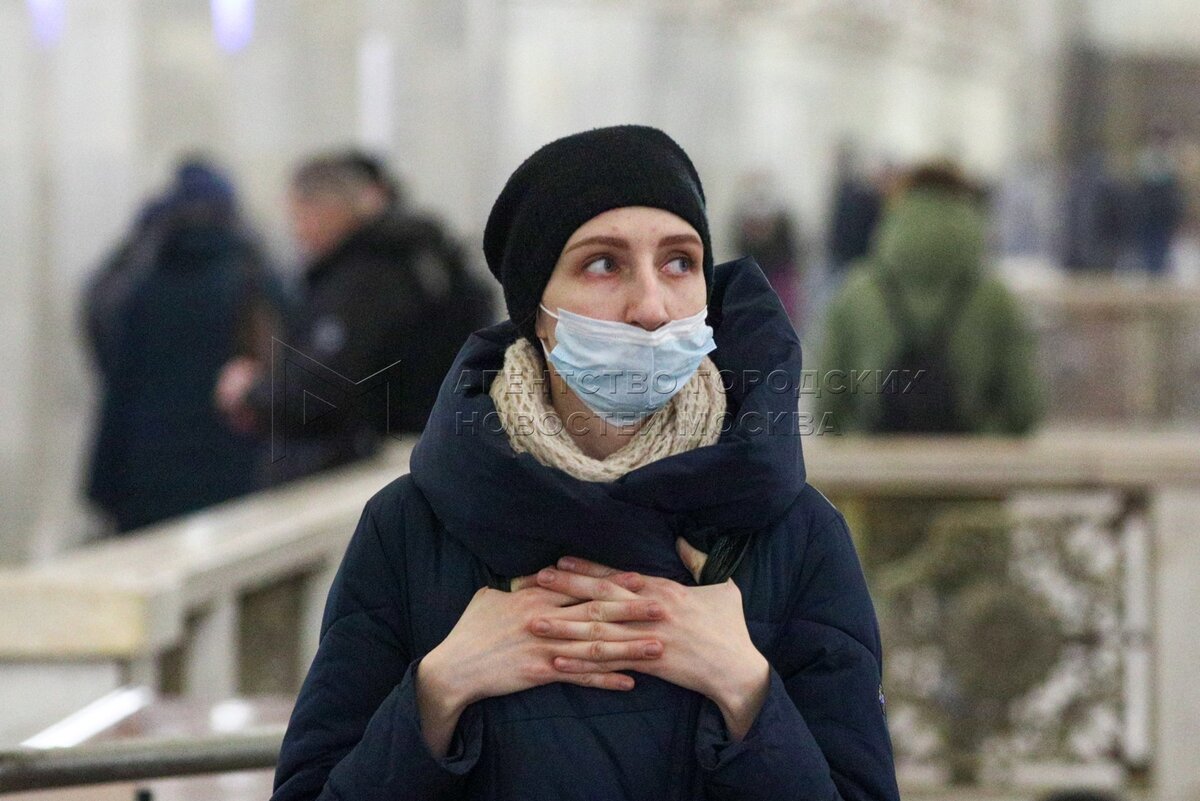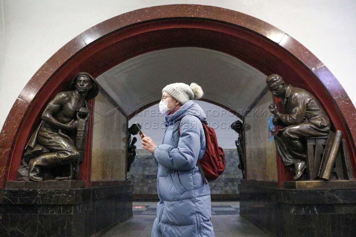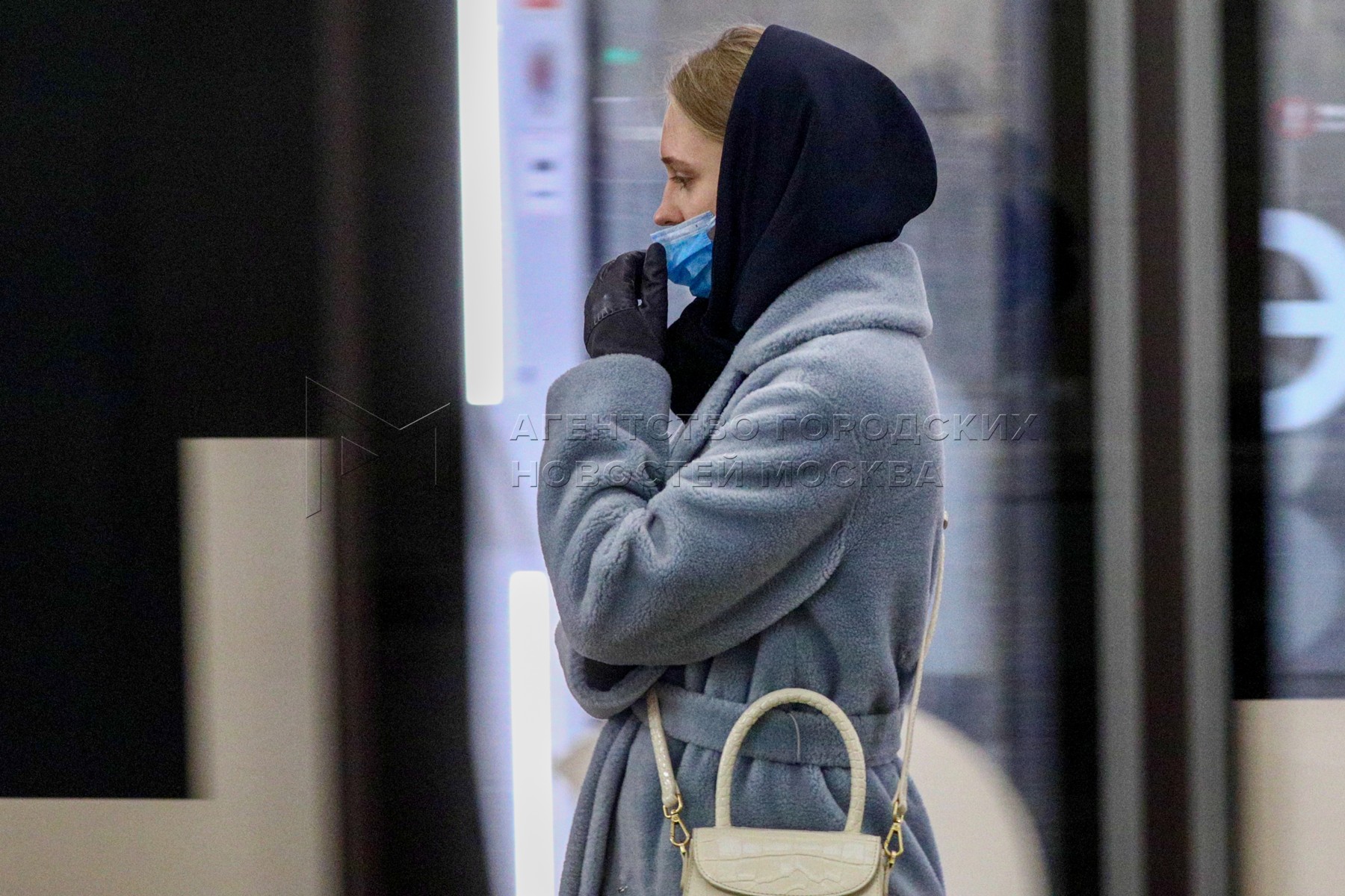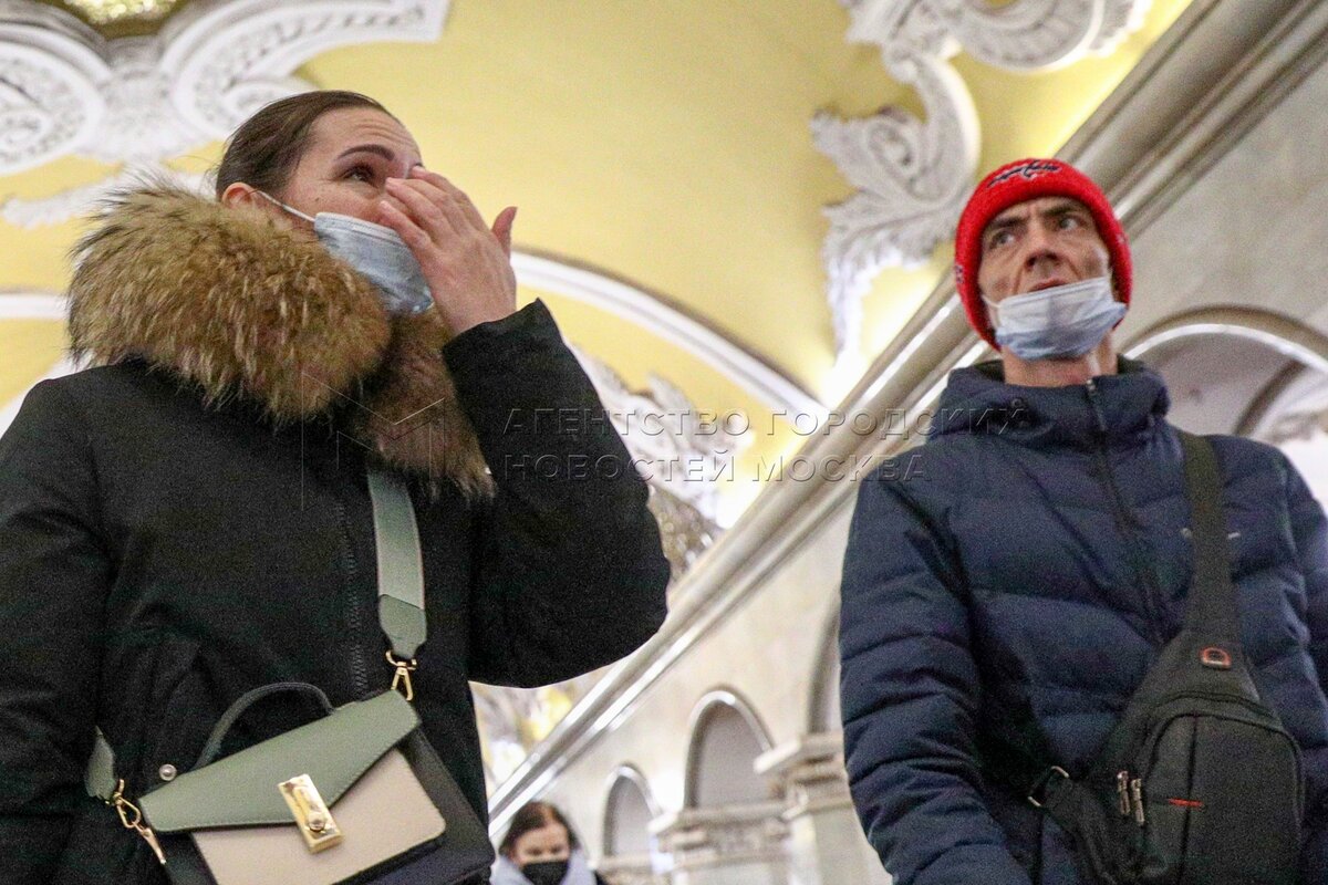 Соблюдение масочного режима пассажирами в Московском метрополитене.