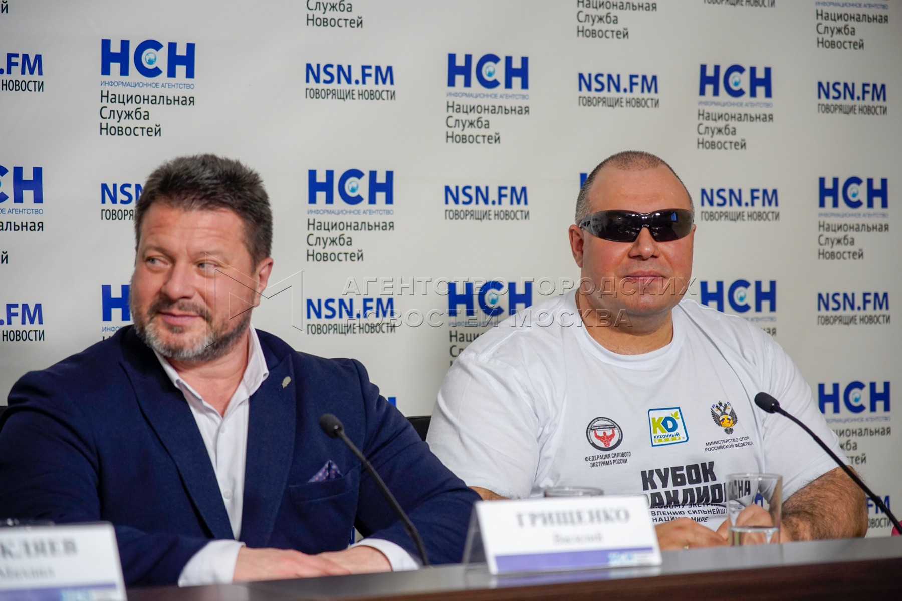 - Описание: Рекордсмен мира по силовому экстриму Михаил Кокляев и заместитель президента Федерации силового экстрима России, рекордсмен мира по буксировке многотонной техники и силовым номерам Сергей Агаджанян на пресс-конференции «Русские Халки: как развивается силовой экстрим в России?».