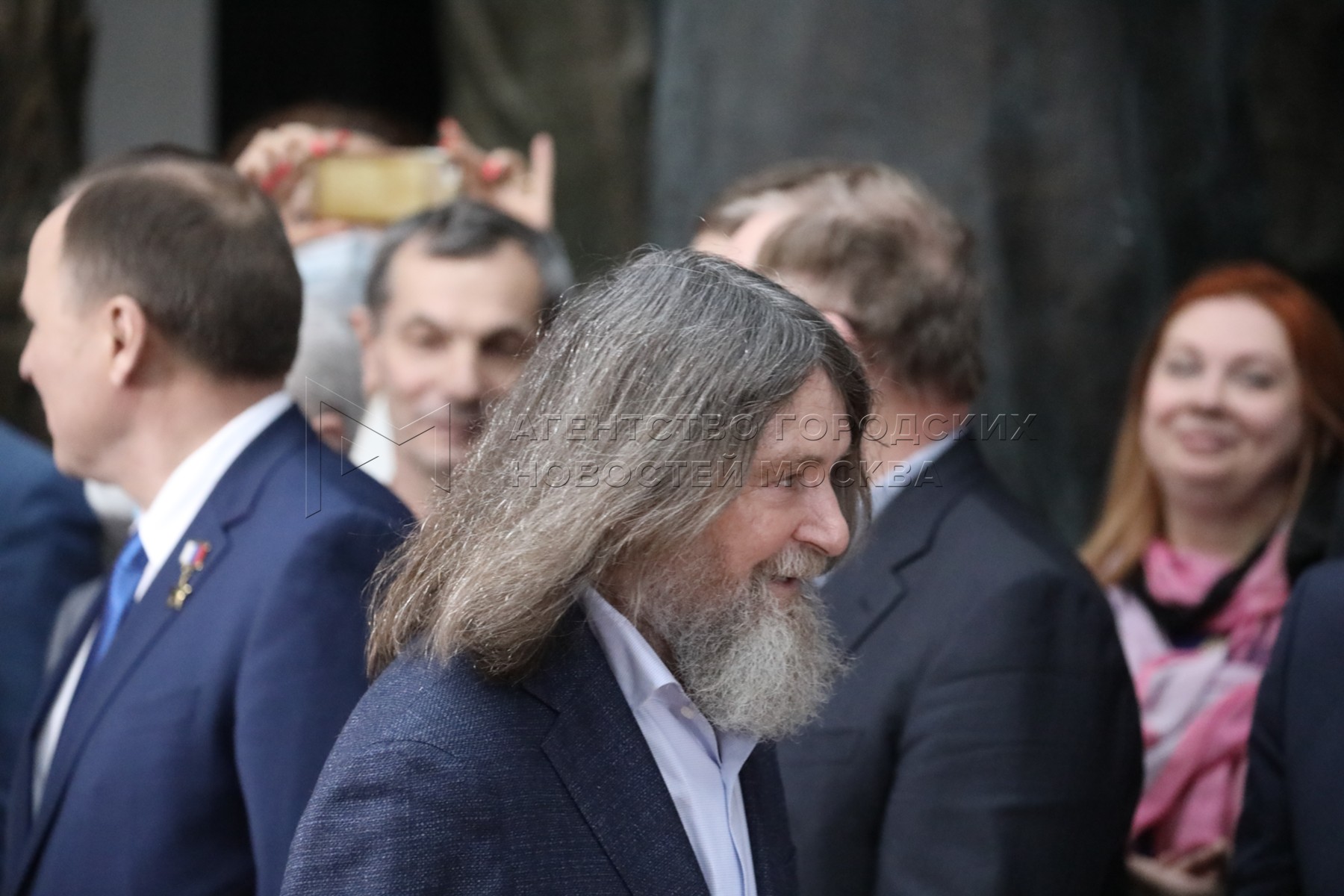 Скульптор Григорий Потоцкий, супруга Ф.Конюхова Ирина, председатель президиума об...