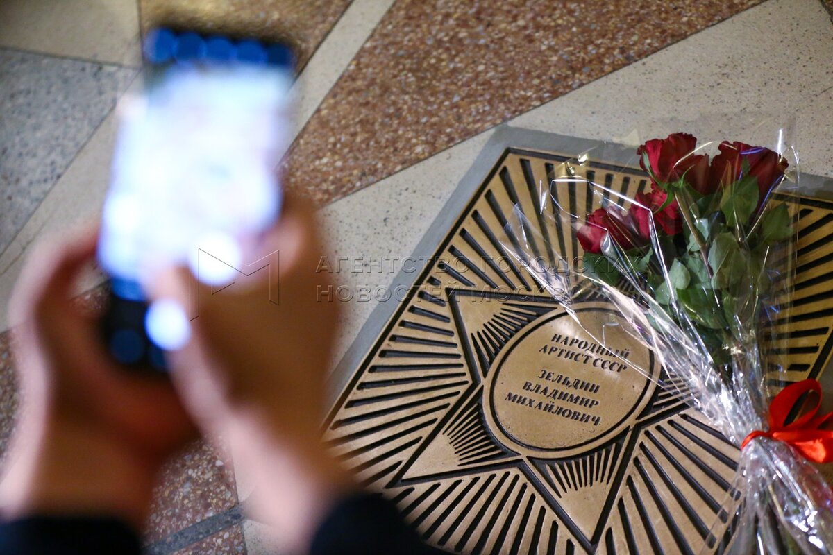 Церемония закладки памятной звезды народного артиста СССР Владимира Зельдина в Це...