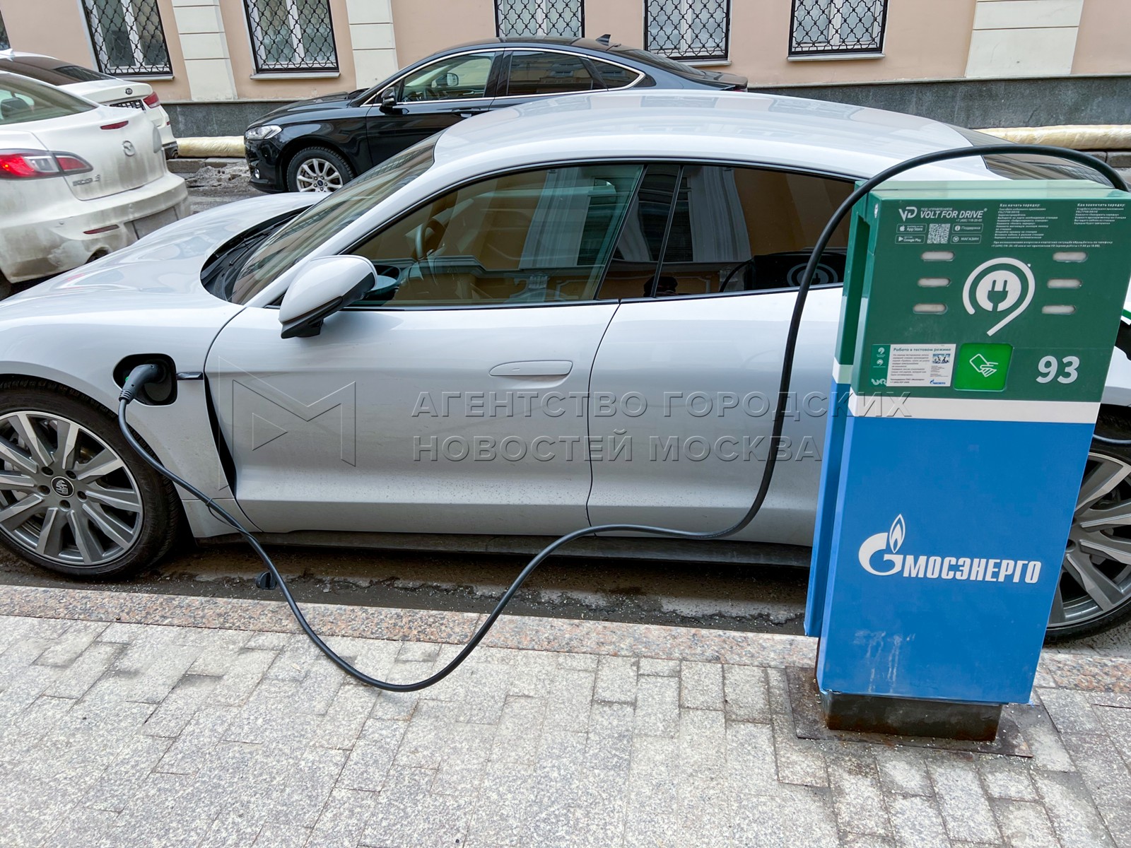 Работа станции для зарядки электротранспорта в Леонтьевском пер.