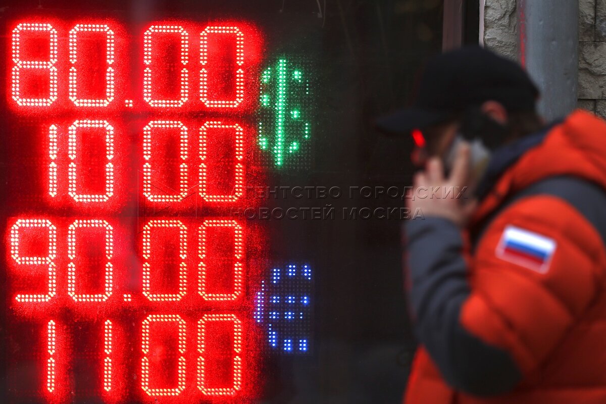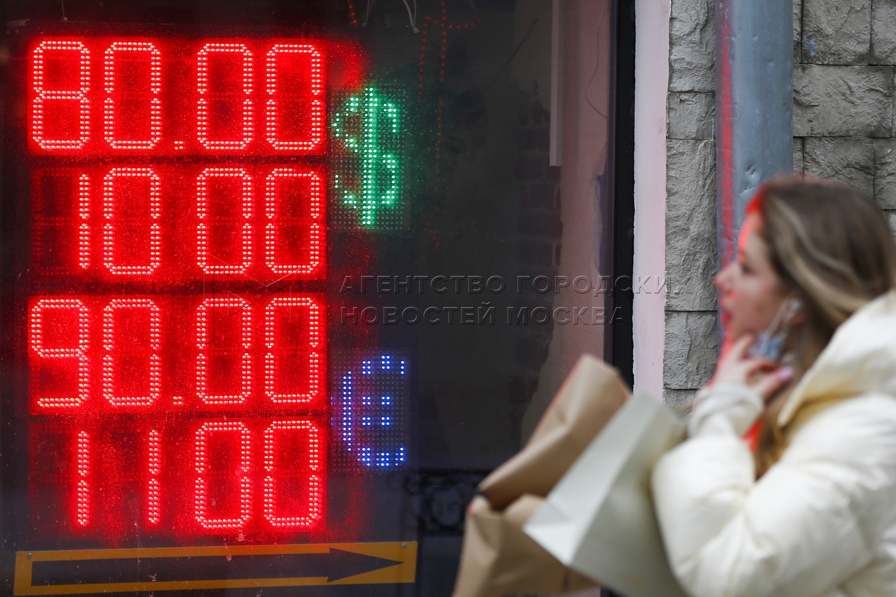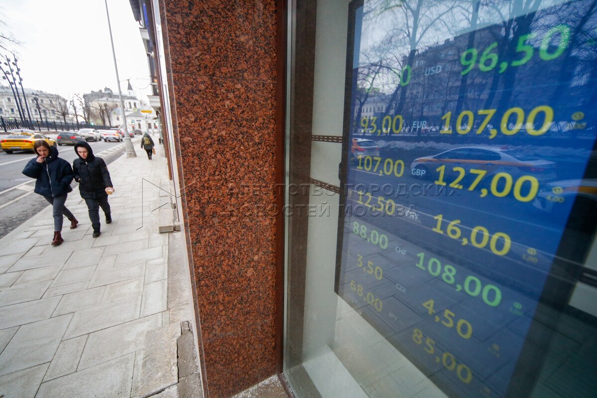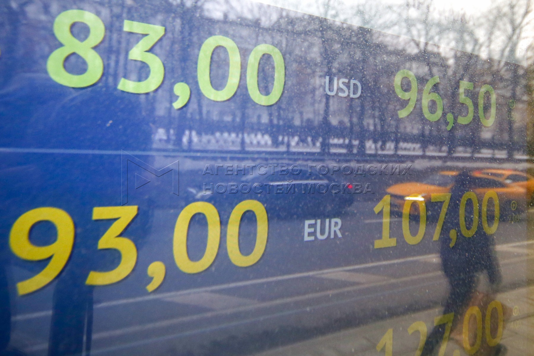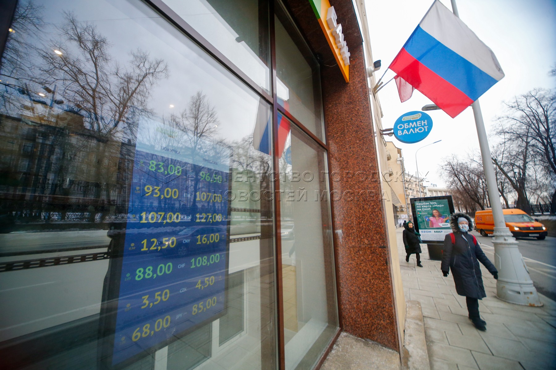 • Описание: Курсы валют в обменных пунктах Москвы 24 февраля 2022 года.