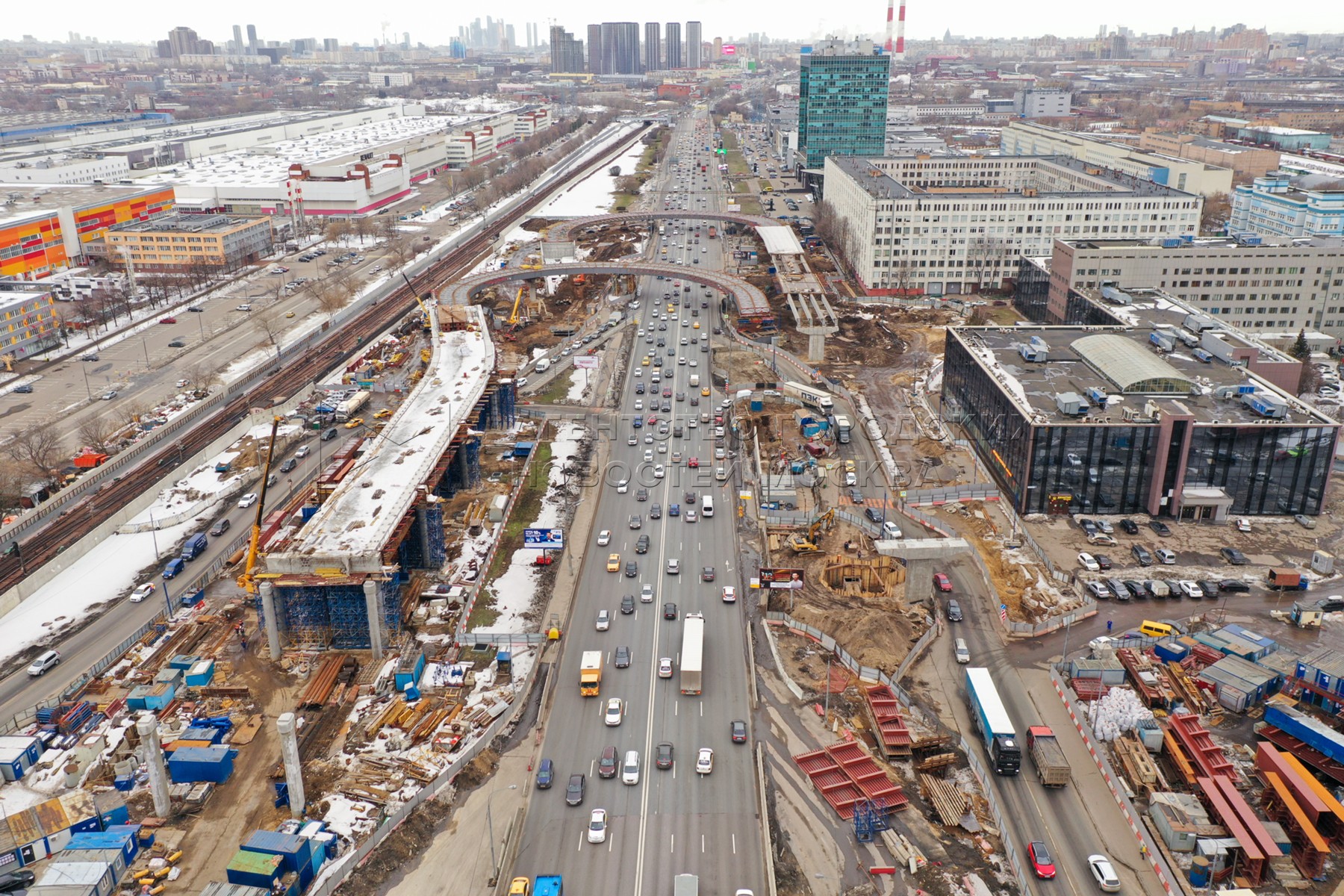 - Заголовок: Вид с квадрокоптера на строительство участка Московского скоростного диаметра в районе Волгоградского проспекта
