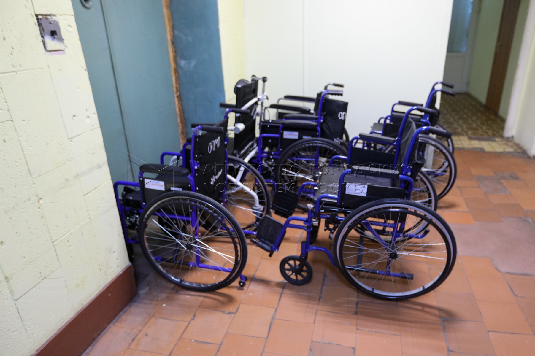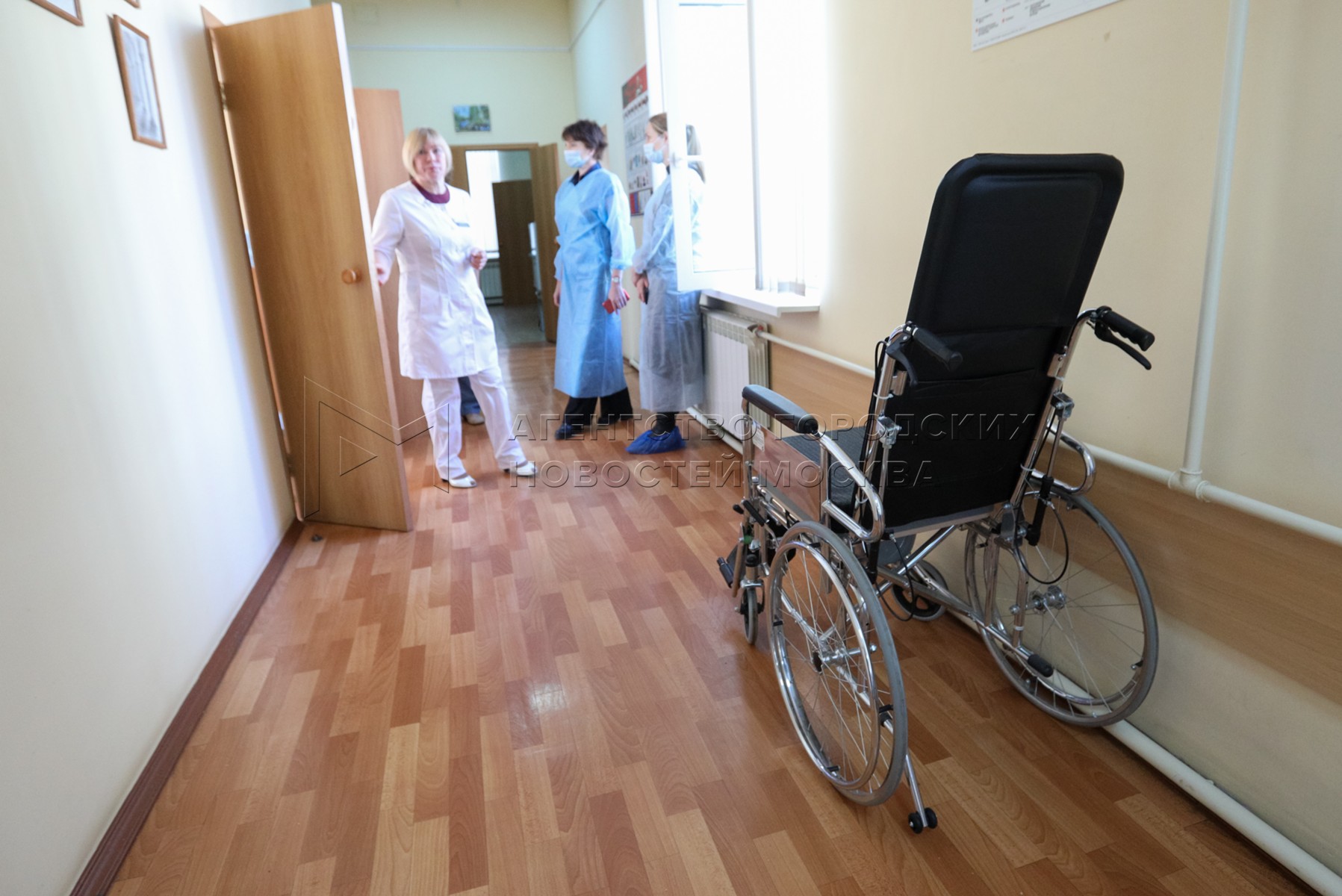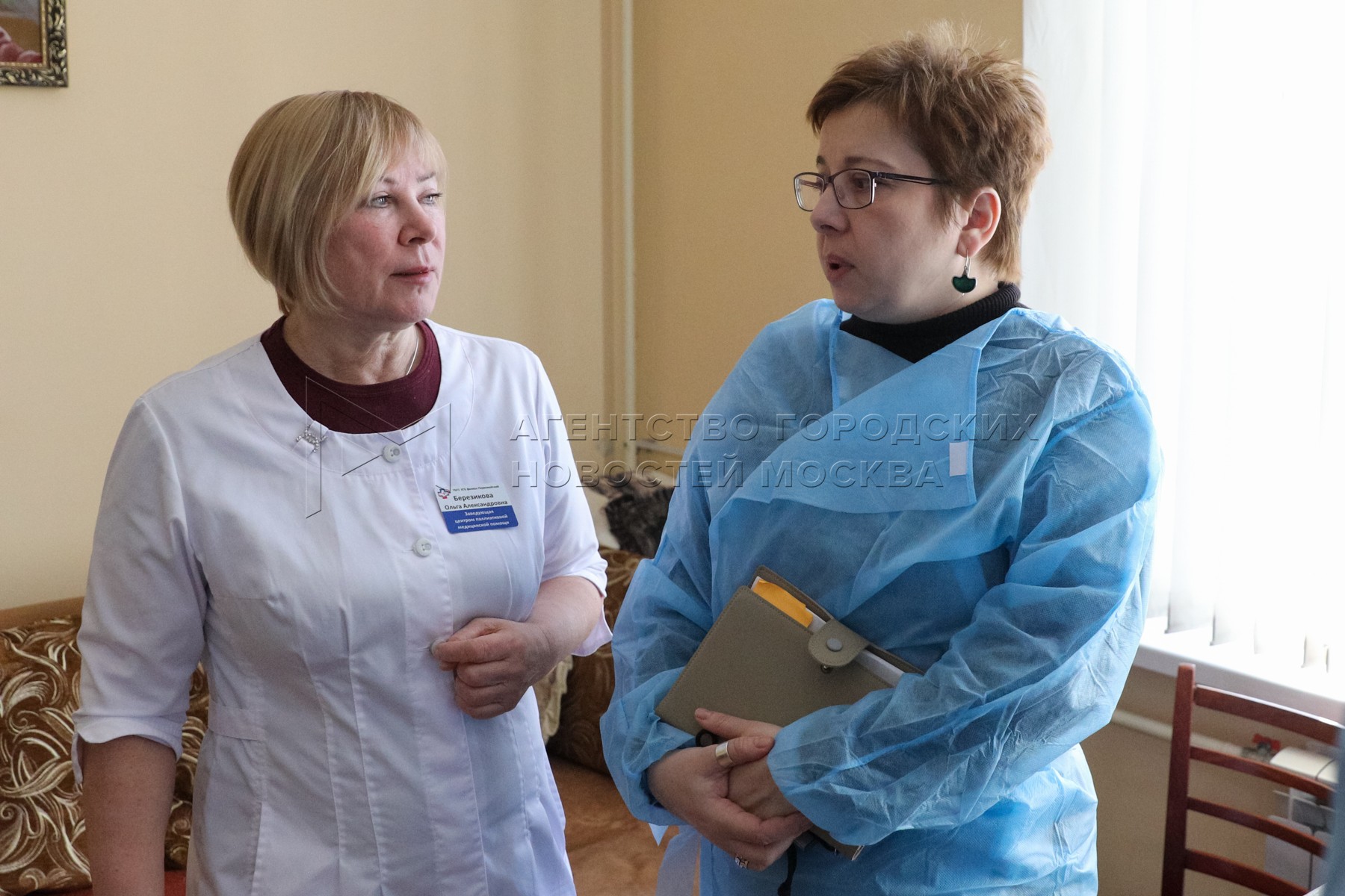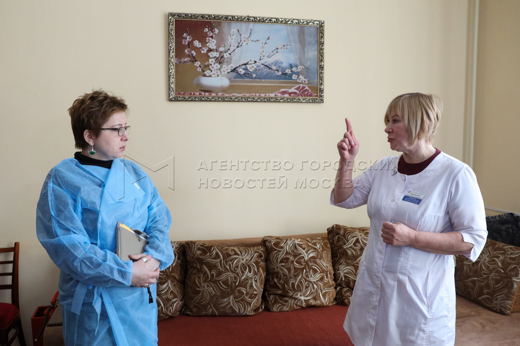 • Описание: Директор Московского многопрофильного центра паллиативной помощи Нюта Федермессер (в центре) во время посещения паллиативного отделения в подмосковной больнице.