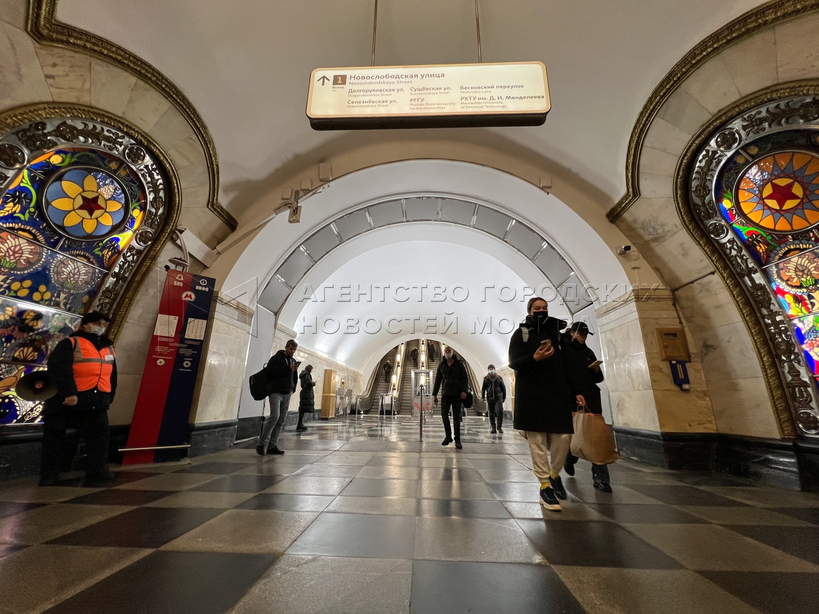 Открытие вестибюля станции «Новослободская» Кольцевой линии метро после реставрац...