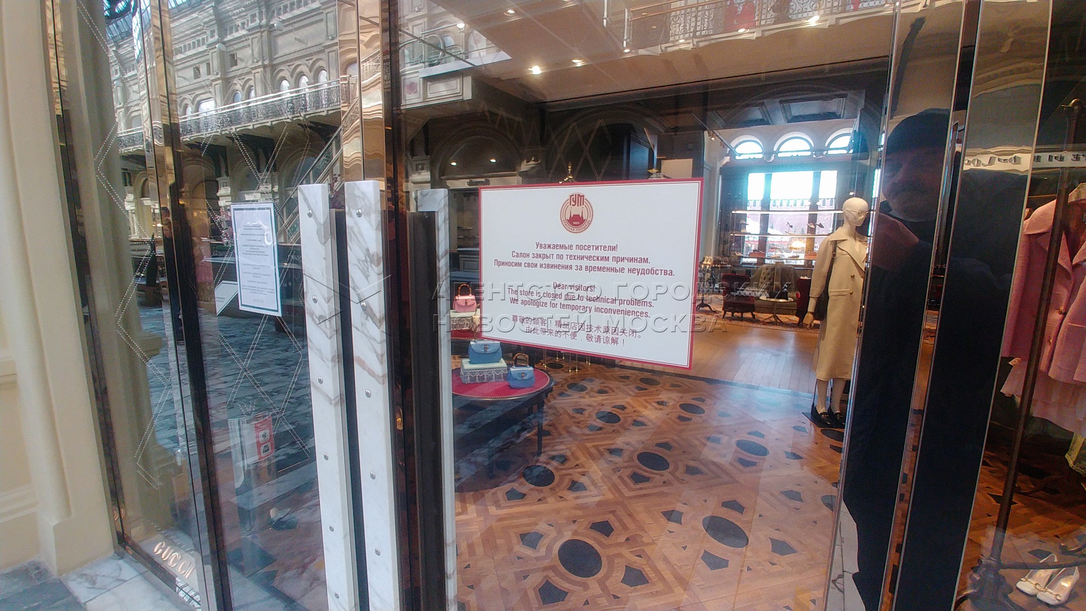 • Описание: Временно закрытый магазины GUCCI в ГУМе.