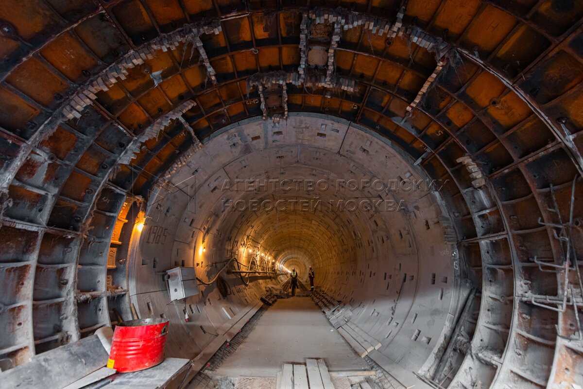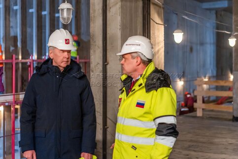 Мэр Москвы Сергей Собянин (справа) во время осмотра строящейся станции «Лианозово...