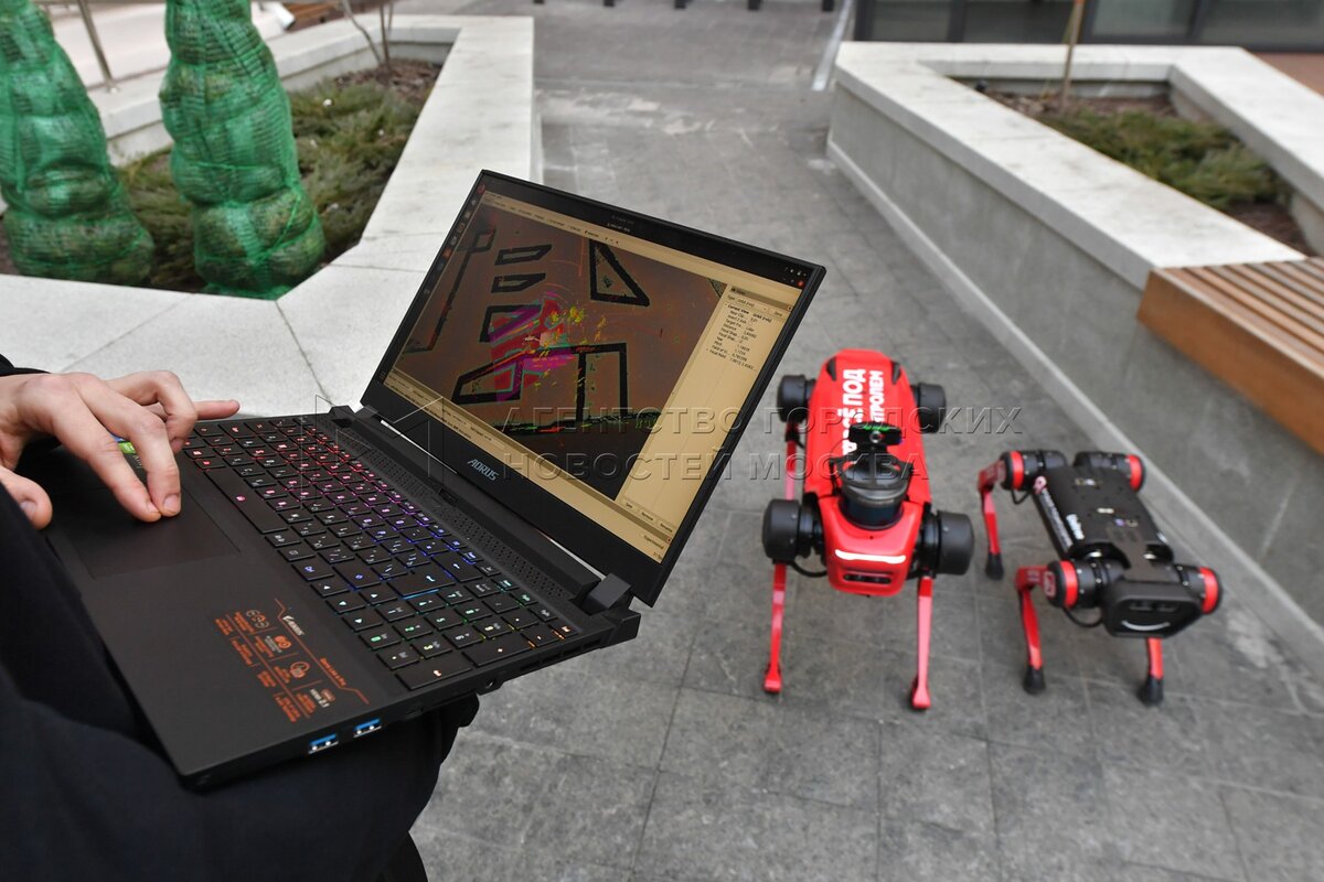 Демонстрация робособаки, предназначенной для выявления фактов самозахвата городских территорий, в Государственной инспекции по контролю за использованием объектов недвижимости Москвы.