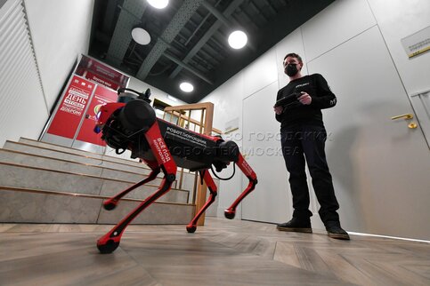 • Описание: Демонстрация робособаки, предназначенной для выявления фактов самозахвата городских территорий, в Государственной инспекции по контролю за использованием объектов недвижимости Москвы.