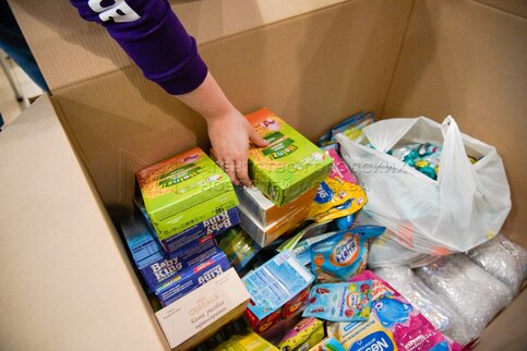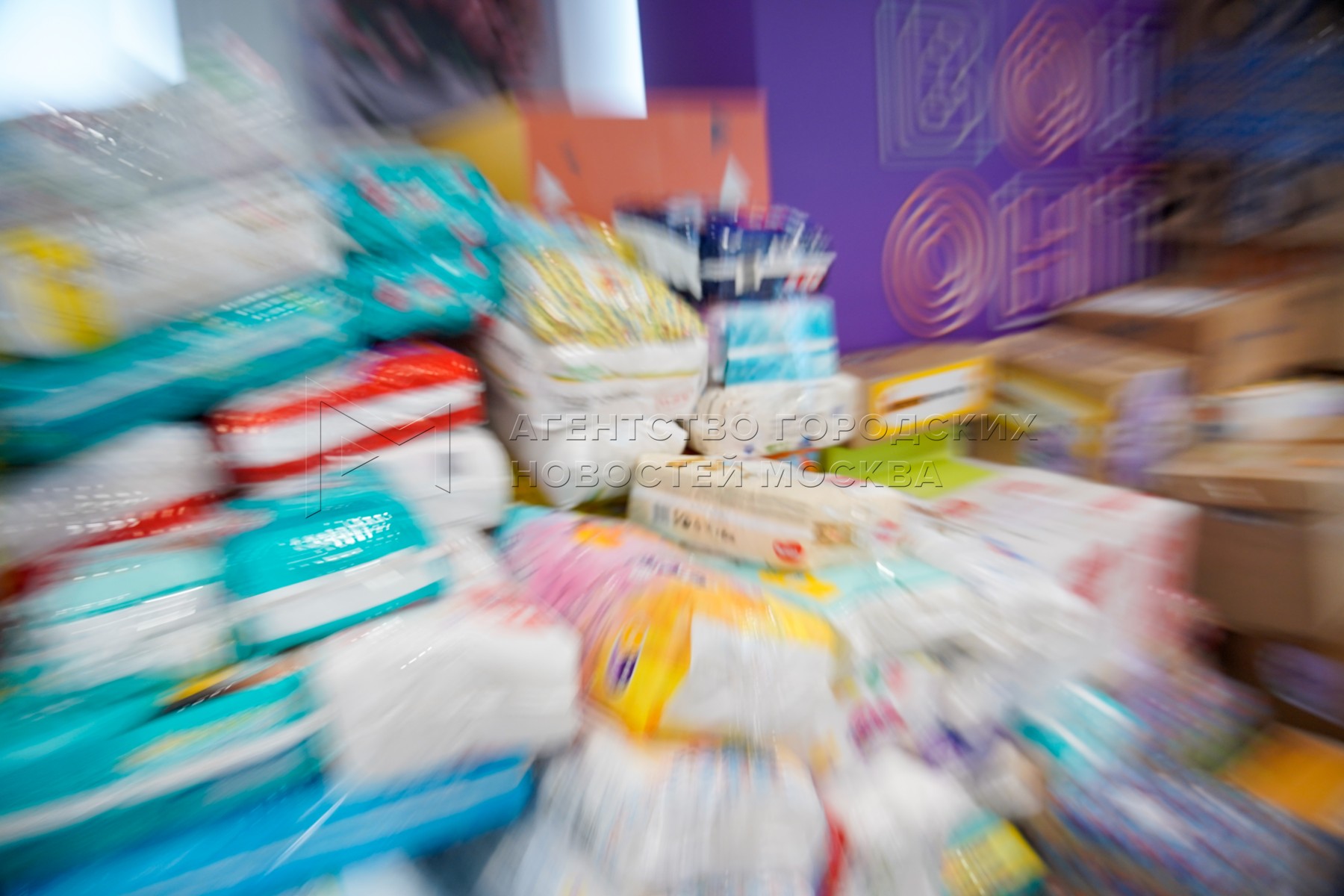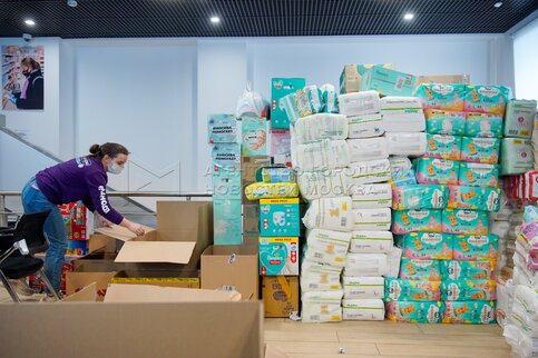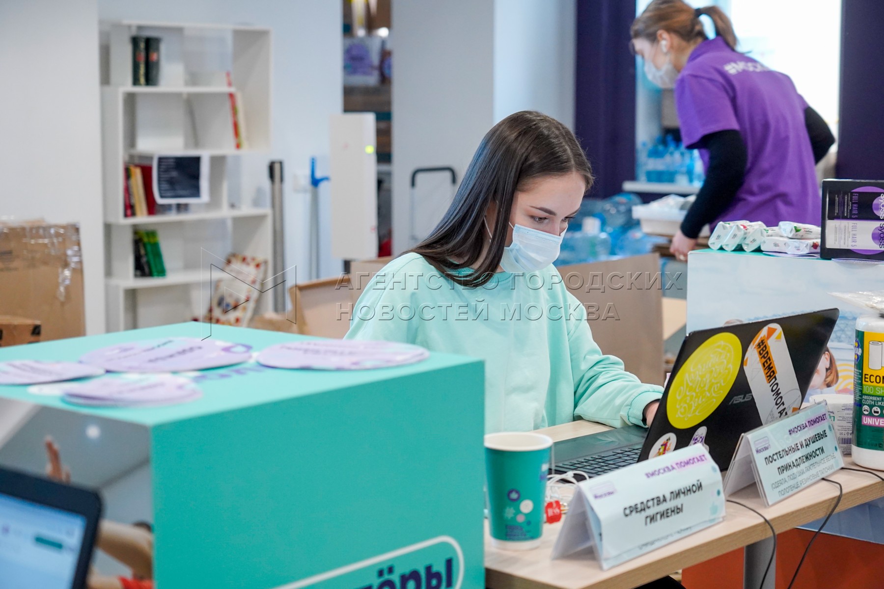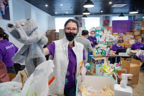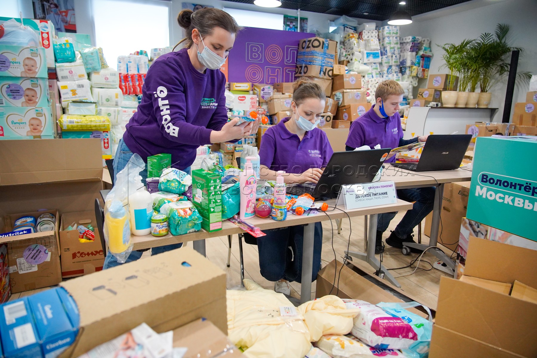 - Описание: Штаб по сбору гуманитарной помощи от торговых сетей для семей из Донецкой и Луганской народных республик (ДНР и ЛНР) в штабе ресурсного центра «Мосволонтер» на Ленинградском проспекте.