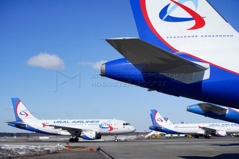 Самолеты авиакомпании «Уральские авиалинии» в аэропорту Домодедово.