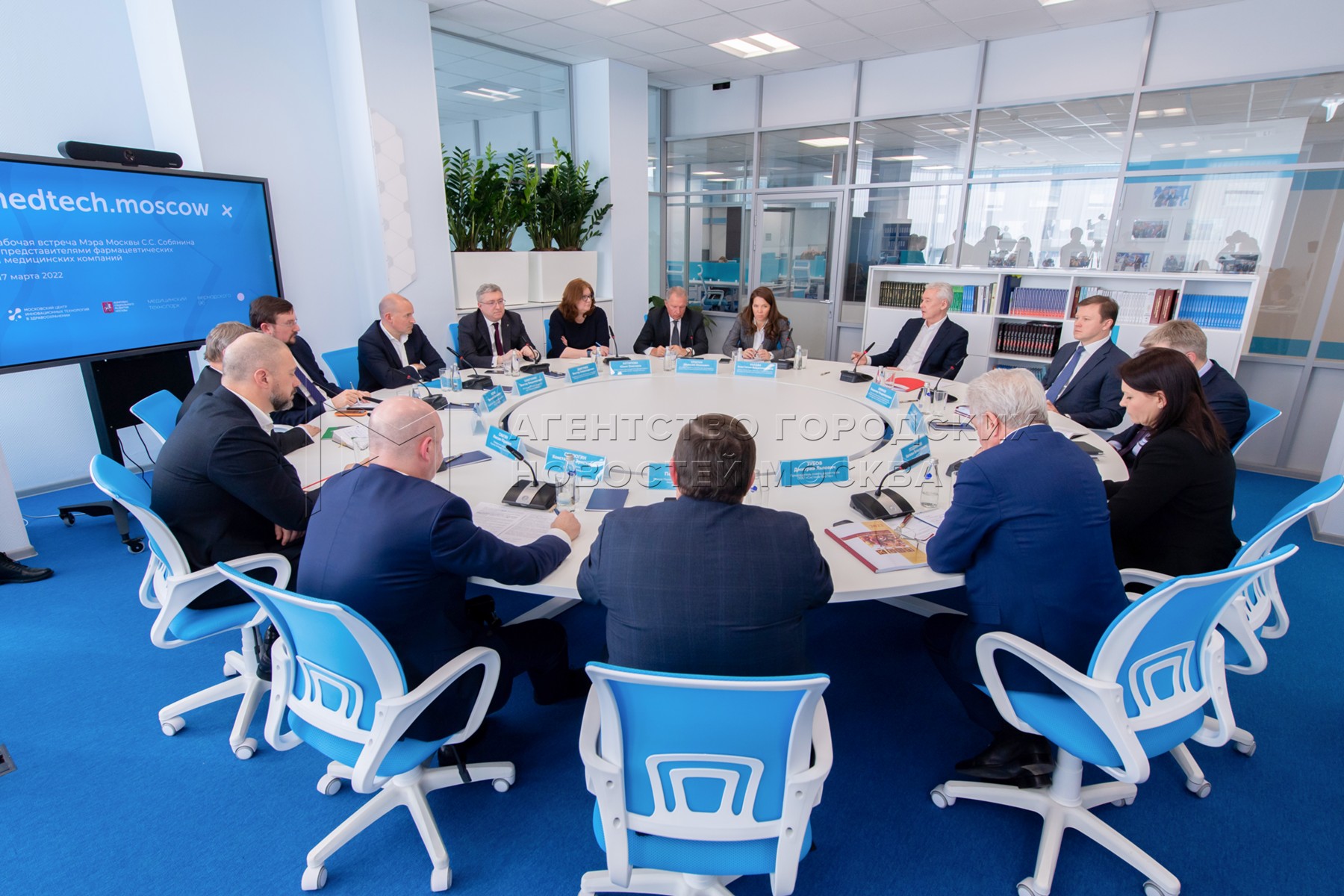 - Описание: Встреча мэра Москвы Сергея Собянина с представителями крупных фармацевтических компаний по вопросам развития отрасли и импортозамещения в условиях внешнего санкционного давления. Фото: Владимир Новиков, пресс-служба мэра и правительства столицы.