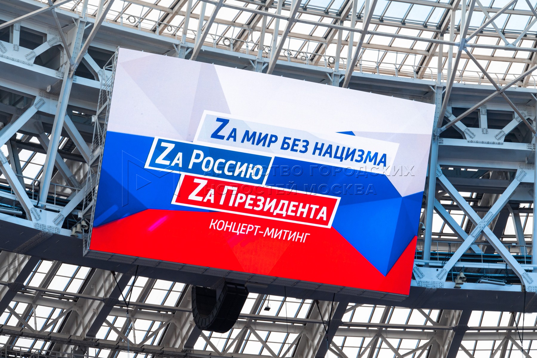 Президент РФ Владимир Путин на концерте-митинге в «Лужниках» в честь годовщины во...
