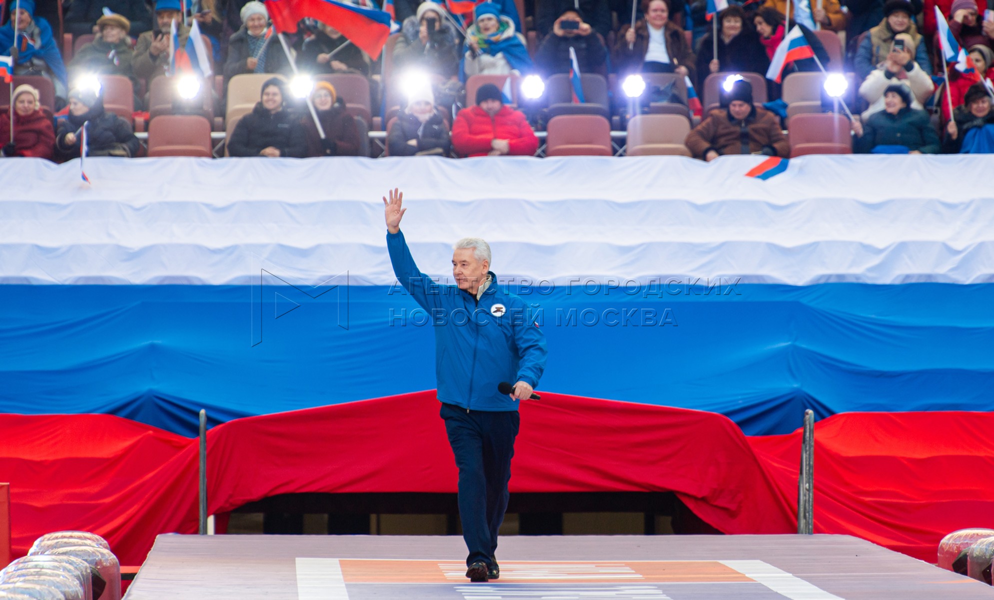 Мэр Москвы Сергей Собянин на концерте-митинге в «Лужниках» в честь годовщины восс...