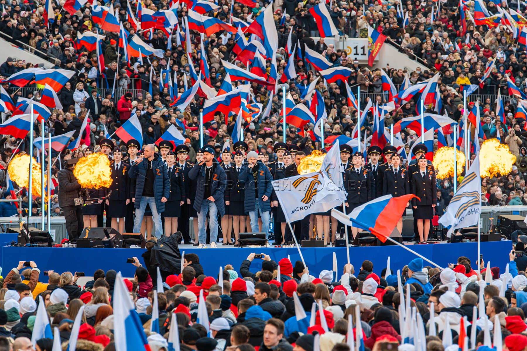 Концерт-митинг в «Лужниках» в честь годовщины воссоединения Крыма и Севастополя с...