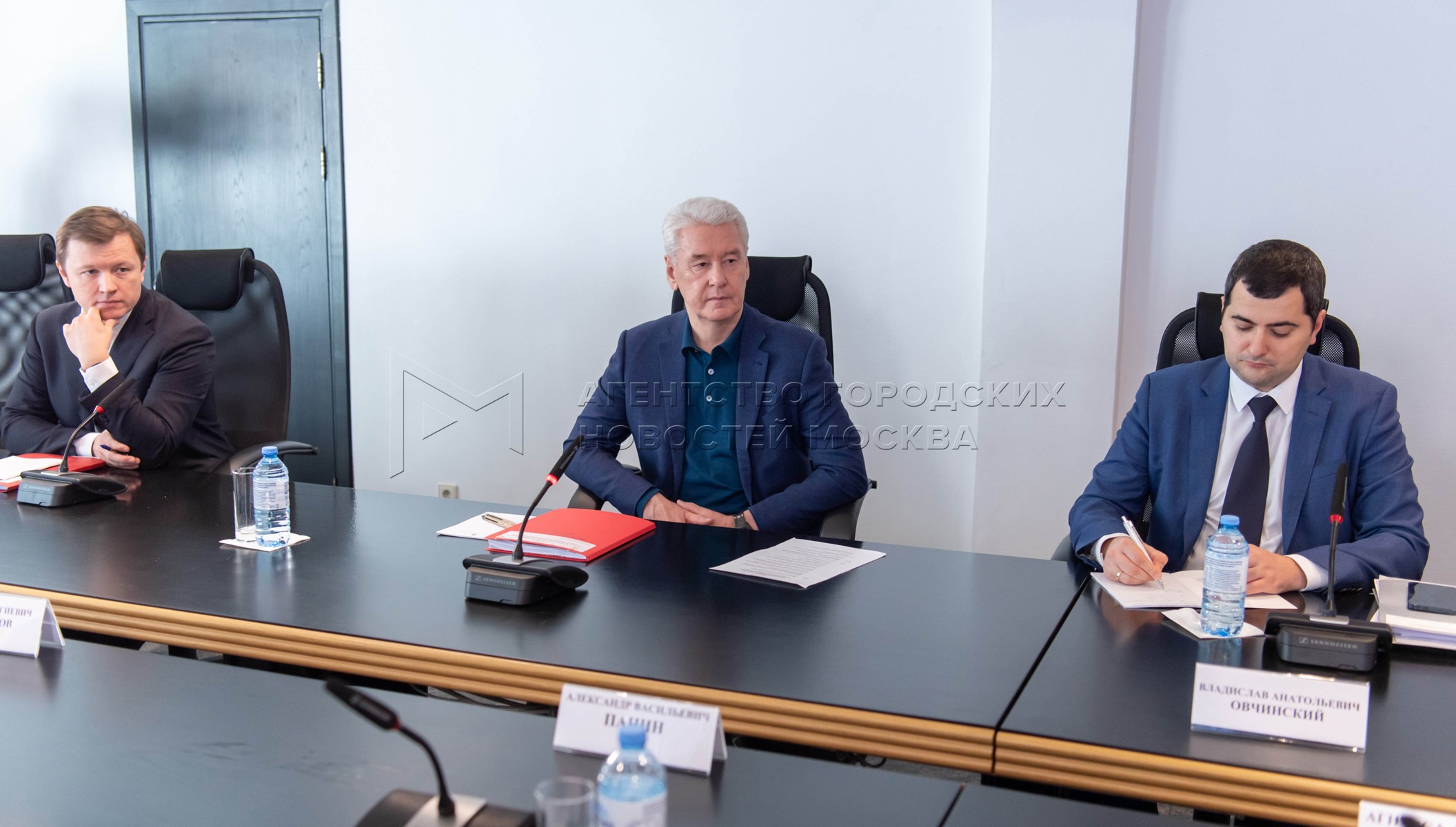 Мэр Москвы Сергей Собянин (в центре) во время посещения Черкизовского мясоперераб...