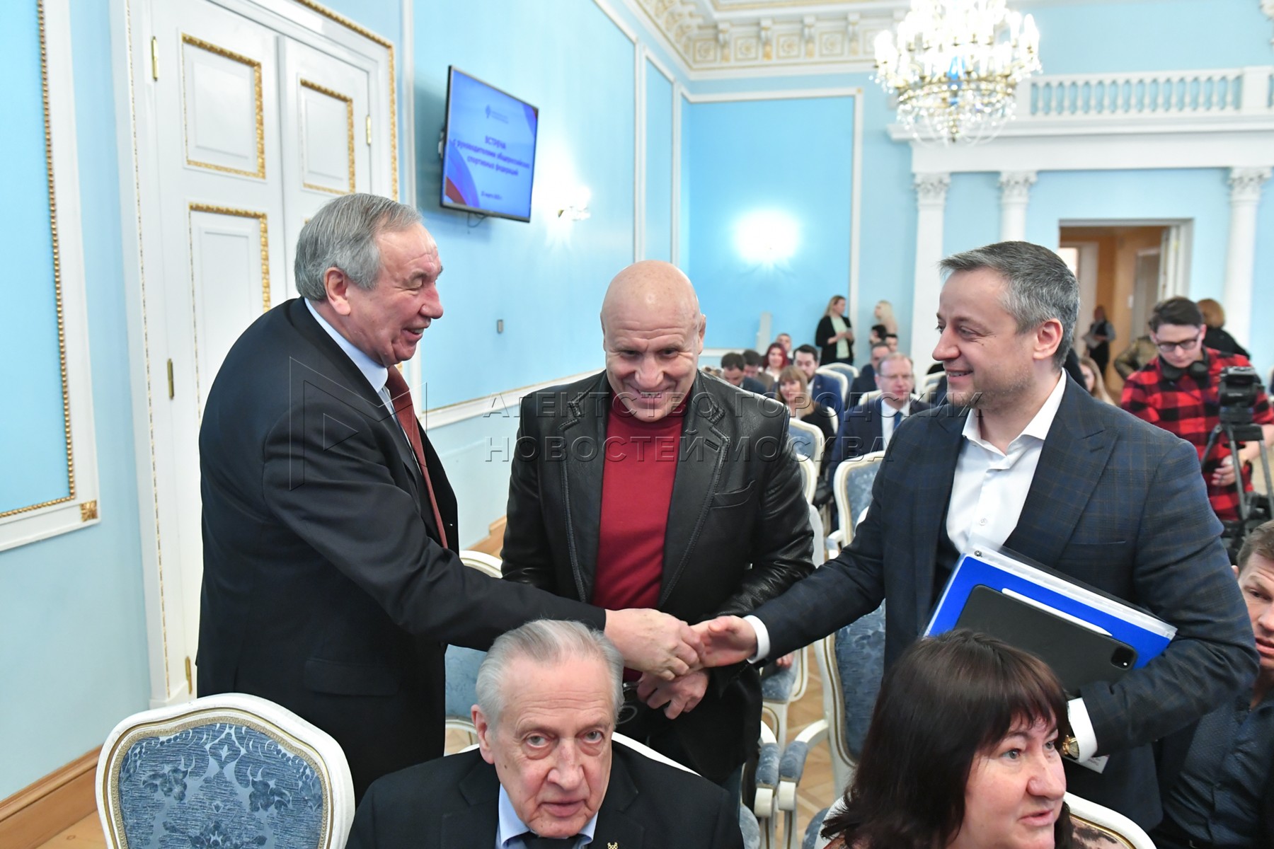 Президент Федерации фигурного катания на коньках России (ФФККР) Александр Горшков (слева на первом плане), президент Федерации лыжных гонок России (ФЛГР) Елена Вяльбе, член Международного олимпийского комитета, президент Федерации тенниса России (ФТР) Шамиль Тарпищев (слева на втором плане) во время встречи министра спорта РФ Олега Матыцина с руководителями спортивных федераций.