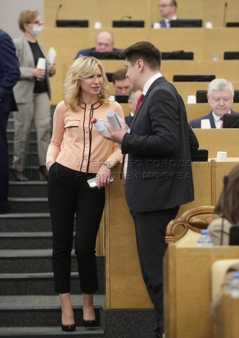 Заместители председателя Государственной Думы Петр Толстой и Анна Кузнецова во вр...