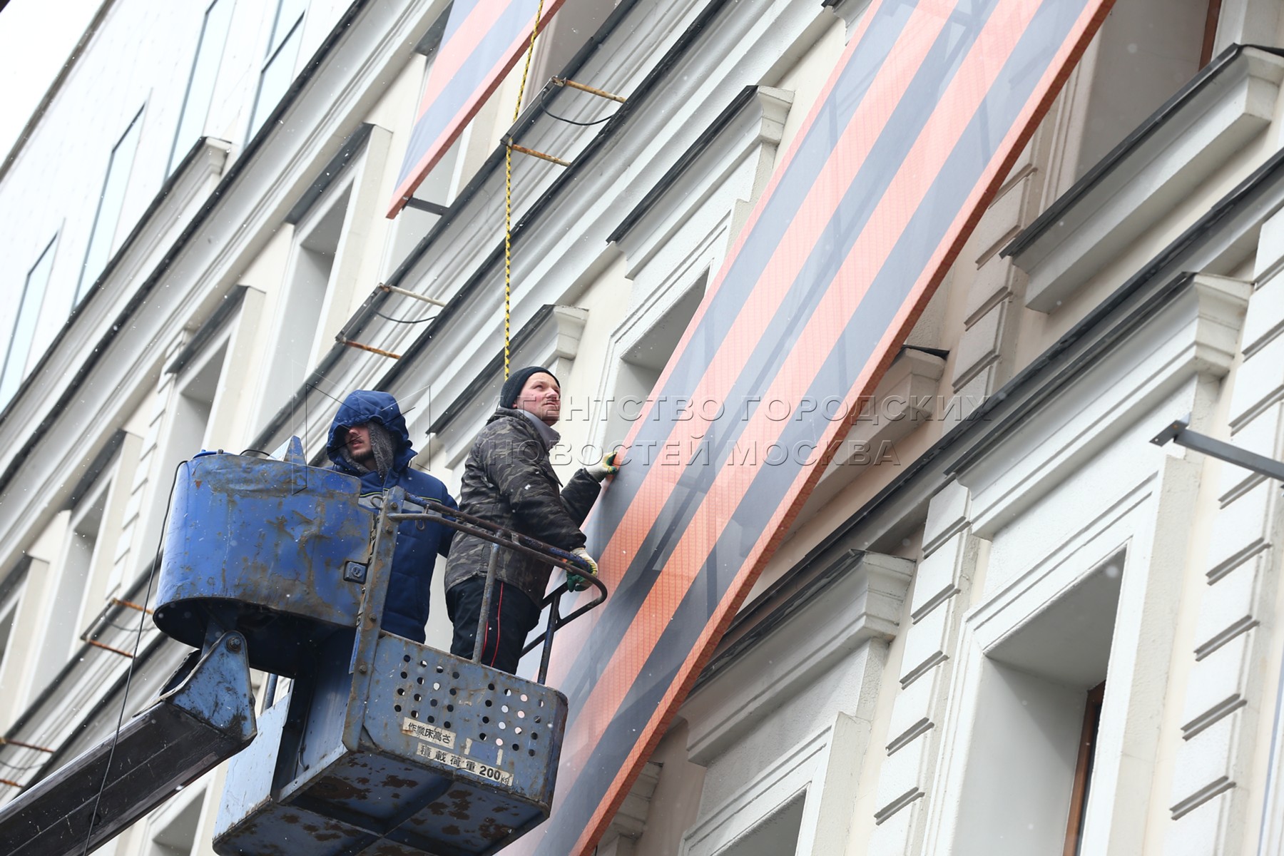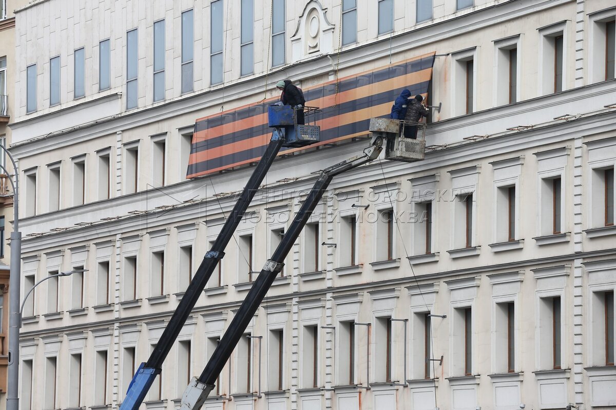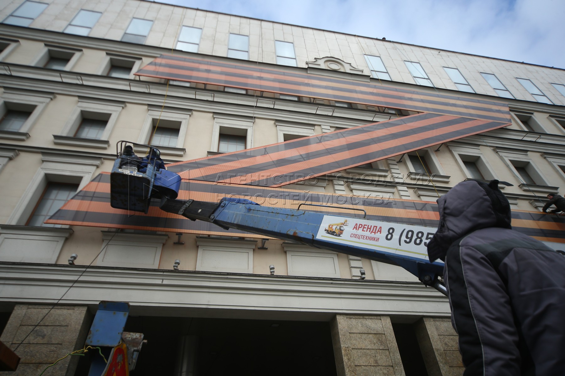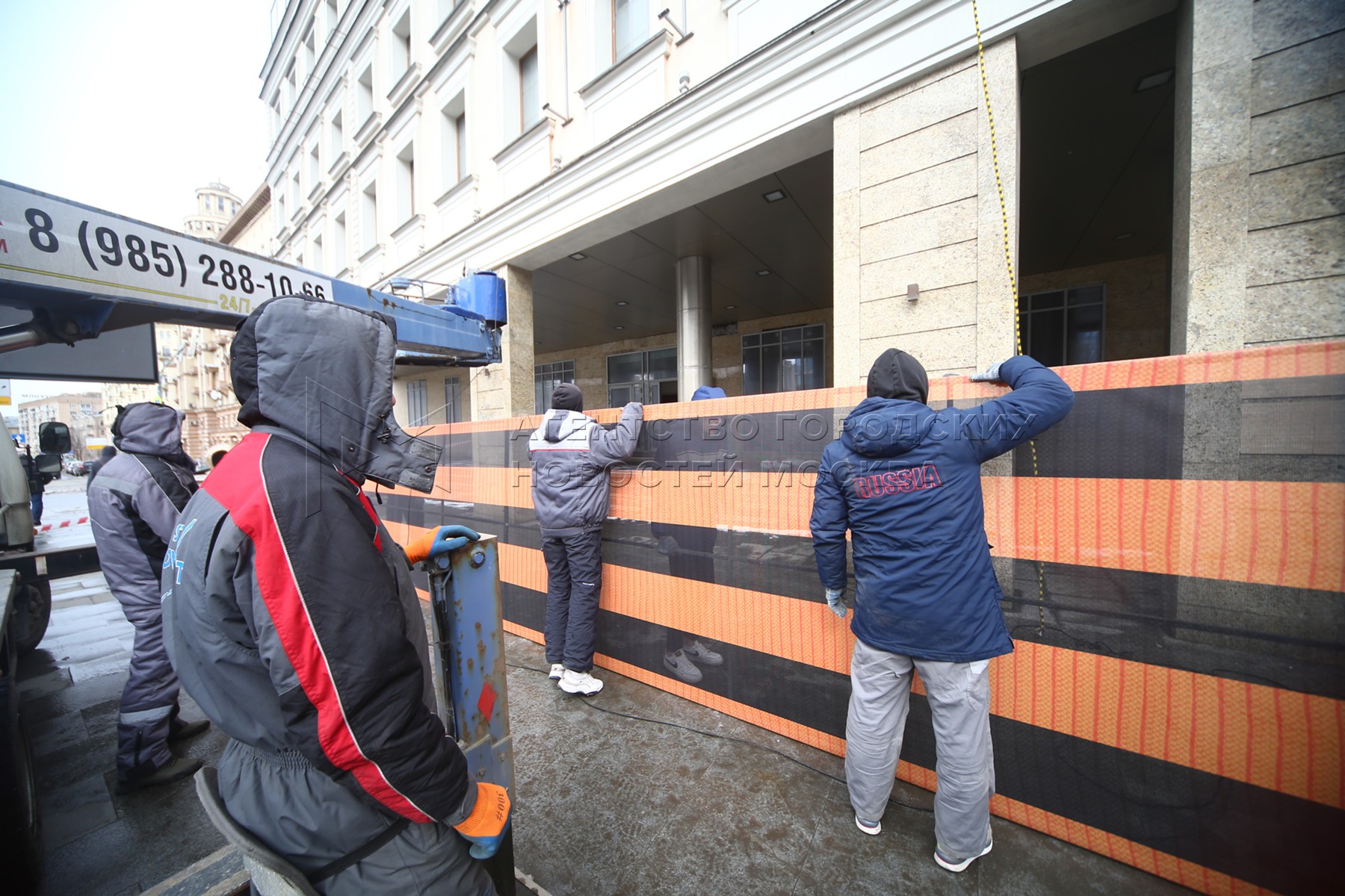 Монтаж символа спецоперации на Украине на фасаде Московского театра Олега Табакова