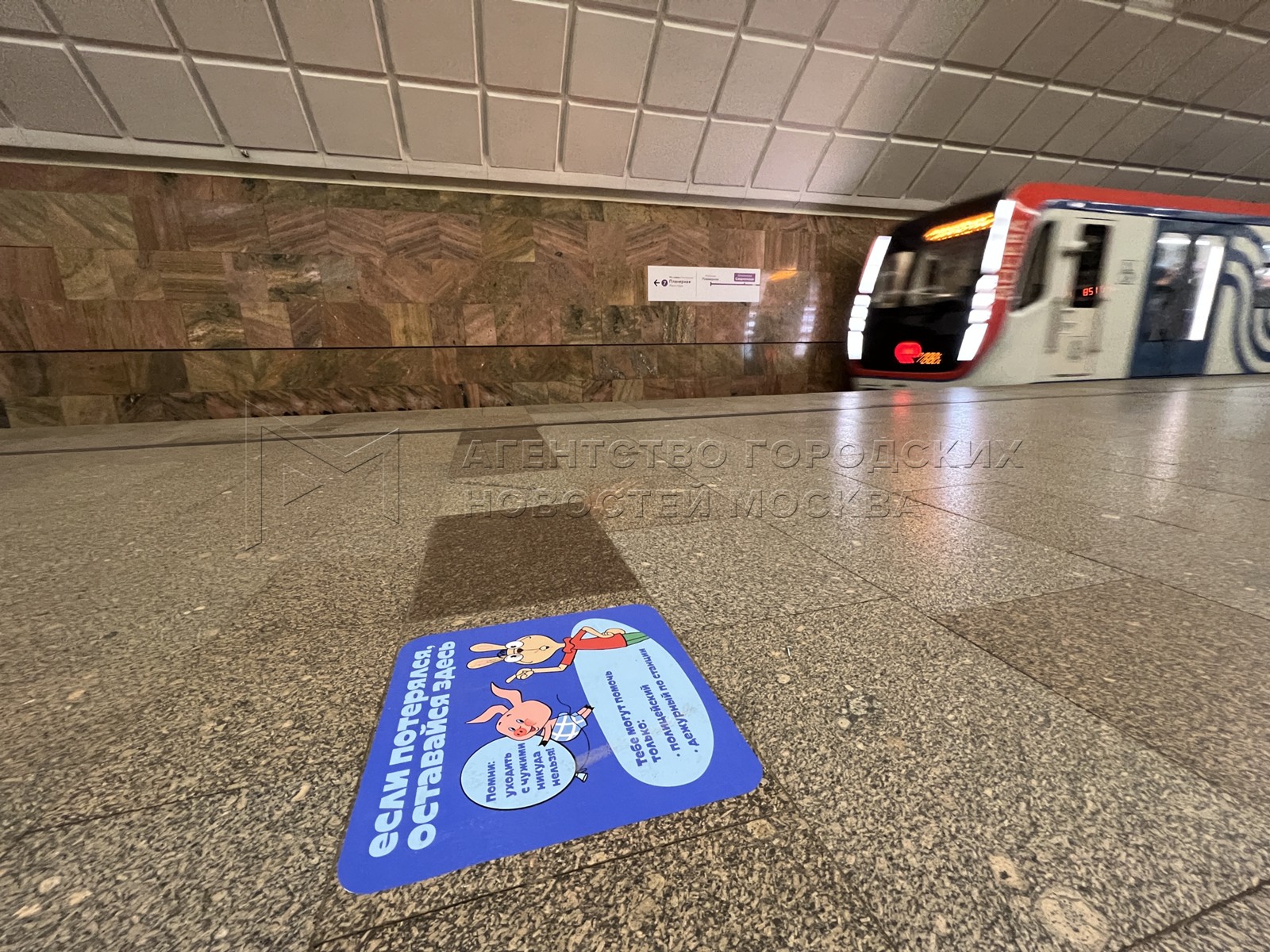 • Заголовок: Напольные стикеры «Если потерялся, оставайся здесь» в московском метро