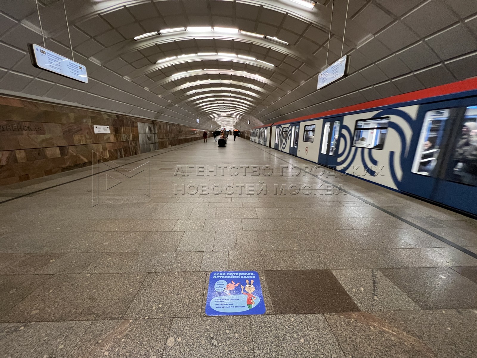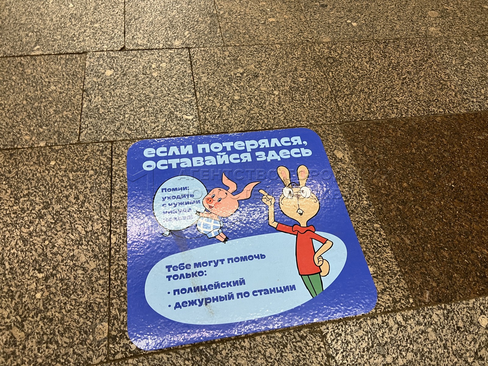 • Заголовок: Напольные стикеры «Если потерялся, оставайся здесь» в московском метро