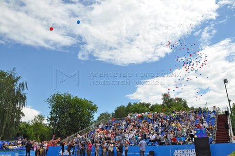 Ведущие турнира Яна Чурикова (вторая слева) и Валдис Пельш (в центре) на турнире ...
