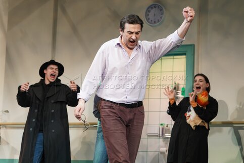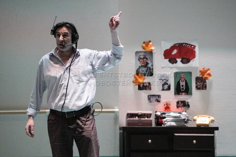 Актер Игорь Петров в роли Дерека (на первом плане) во время спектакля режиссера В...