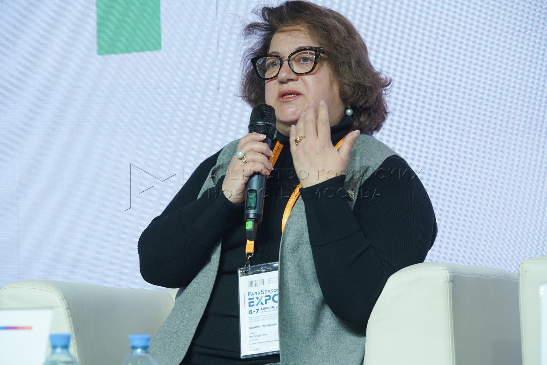 Председатель гильдии профессионалов ландшафтной индустрии Каринэ Лазарева во время II Международной выставки-конференции по созданию, обслуживанию и развитию комфортной городской среды, парков отдыха и общественных пространств ParkSeason Expo, которая проходит 6-7 апреля 2022 года на территории Центрального выставочного комплекса «Экспоцентр».