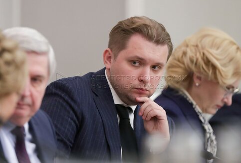 Министр труда и социальной защиты РФ Антон Котяков (в центре) во время пленарного...