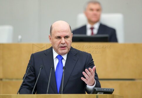 Премьер-министр России Михаил Мишустин во время выступления в Государственной дум...