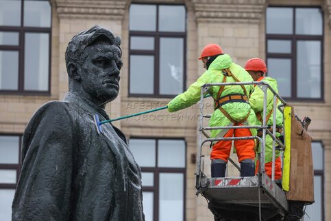 • Заголовок: Промывка памятника Владимиру Маяковскому на Триумфальной площади