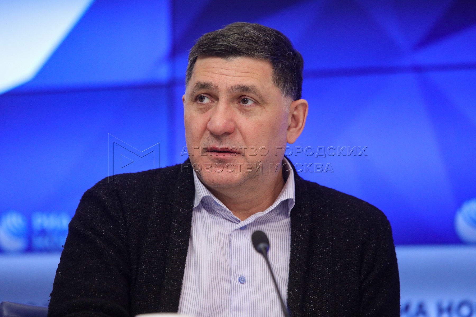 - Описание: Художественный руководитель Ярославского театра драмы имени Ф. Волкова Сергей Пускепалис на пресс-конференции, посвященной благотворительной акции российских театров «Открытый занавес» в поддержку беженцев из Луганской и Донецкой народных республик.
