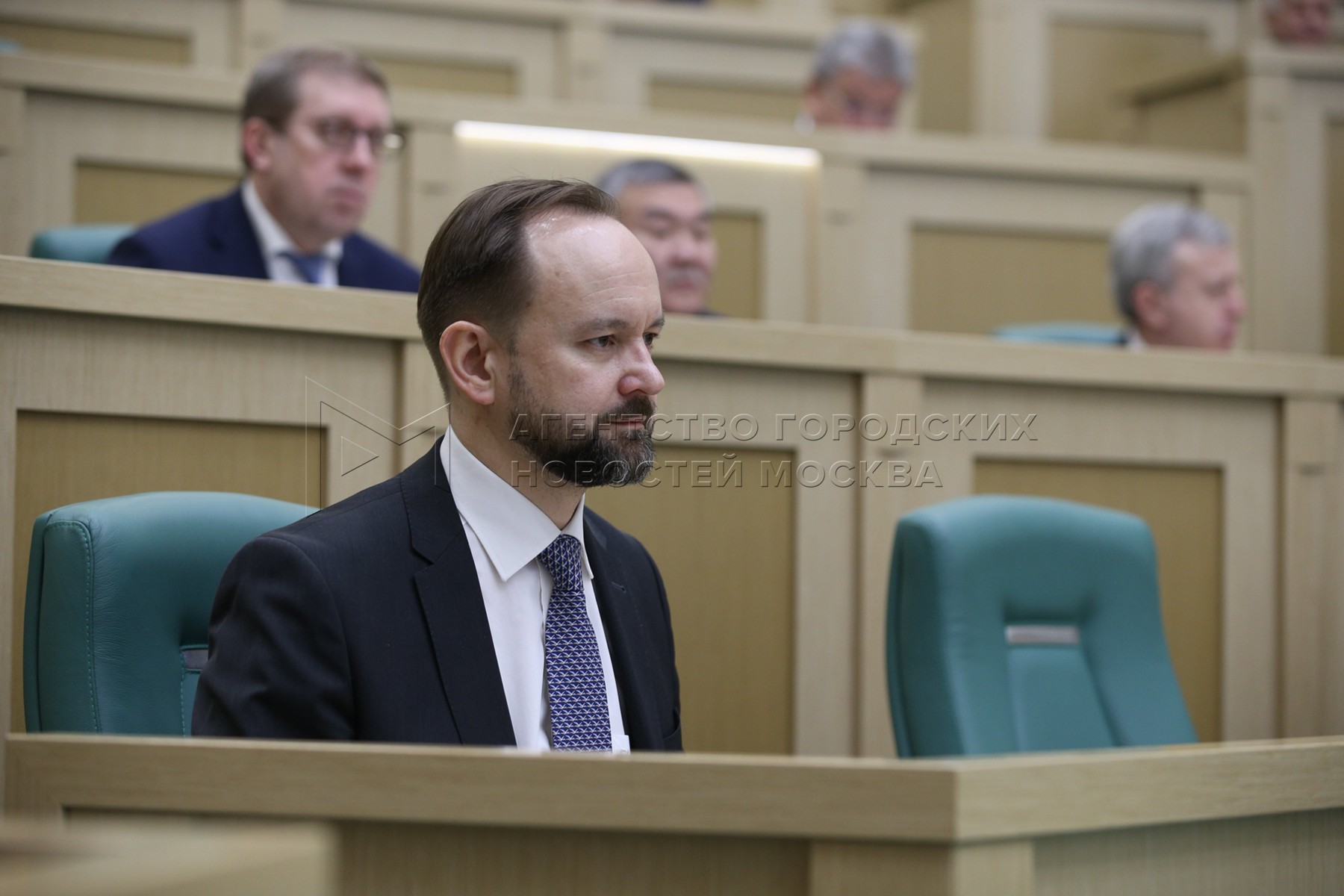 Аудитор Счетной палаты Дмитрий Зайцев во время 523-го заседания Совета Федерации ...