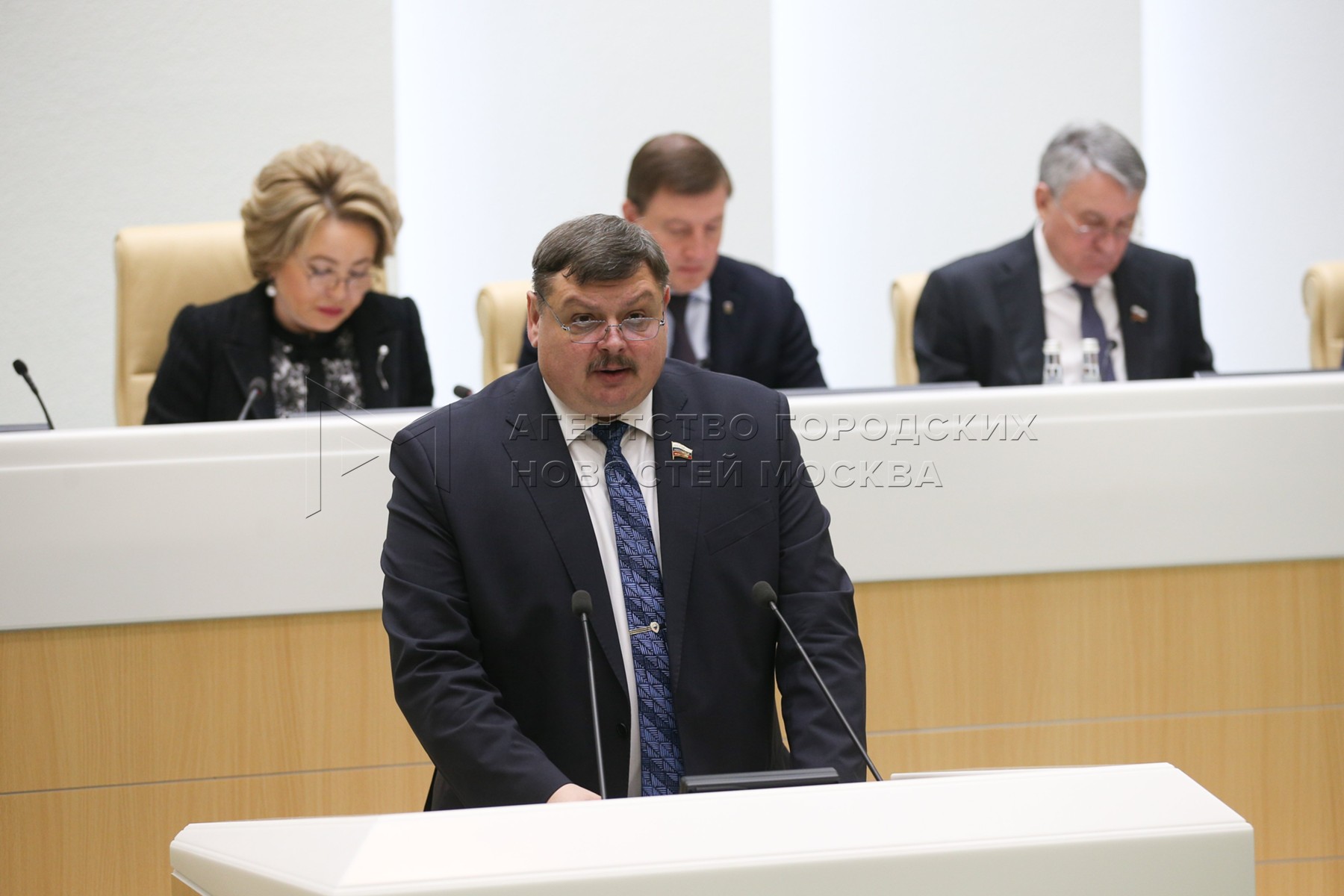 Аудитор Счетной палаты Дмитрий Зайцев во время 523-го заседания Совета Федерации ...