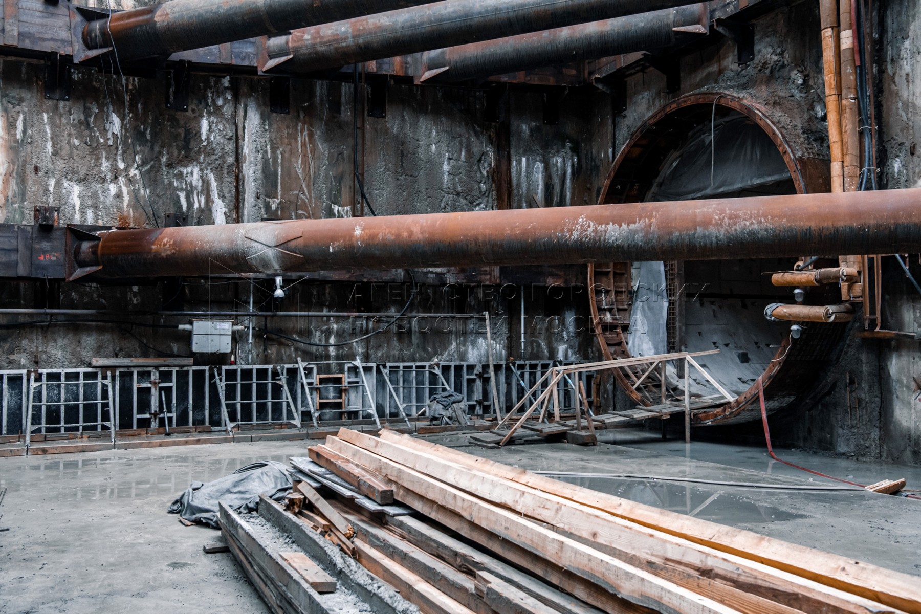 • Описание: Строительство станции метро «Яхромская» Люблинско-Дмитровской линии. Фото: Максим Мишин, пресс-служба мэра и правительства Москвы.
