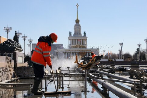 Промывка фонтанов «Дружба народов» и «Каменный цветок» на ВДНХ.