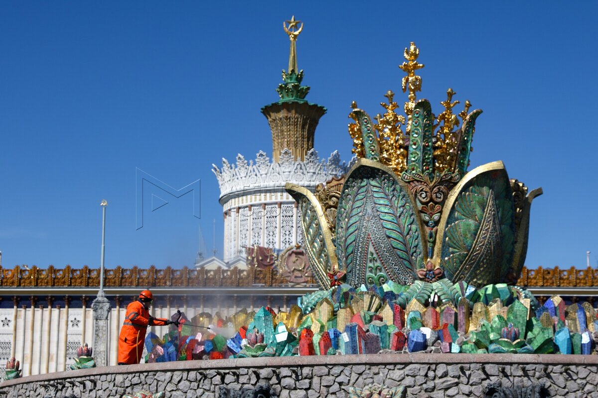 • Заголовок: Промывка фонтанов «Дружба народов» и «Каменный цветок» на ВДНХ