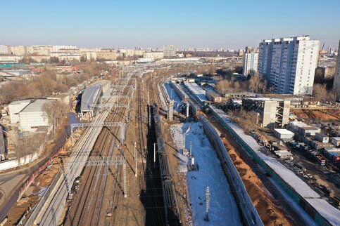 Вид с квадрокоптера на строительство транспортно-пересадочного узла (ТПУ) «Марьина Роща» на северо-востоке Москвы.