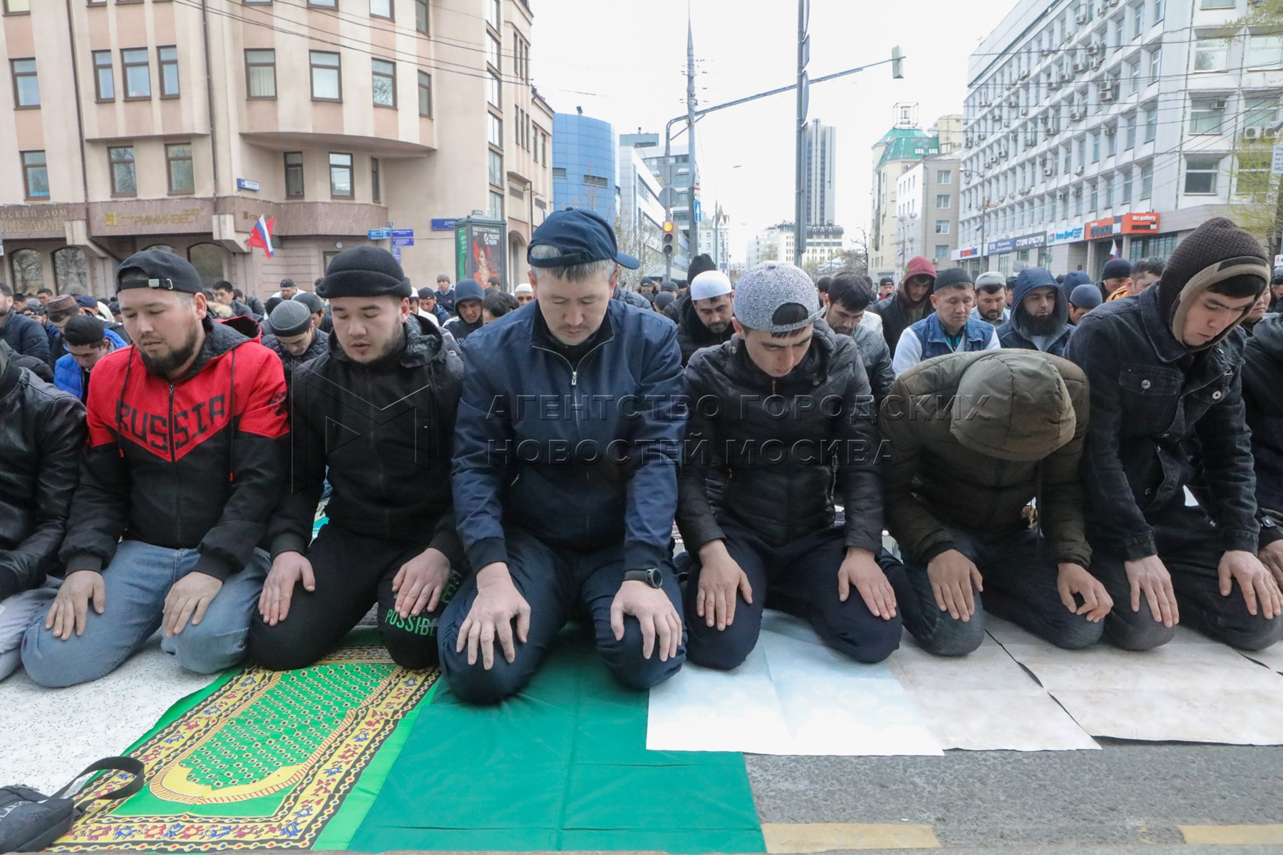 • Описание: Мусульмане во время торжественного намаза по случаю праздника Ураза-байрам у Соборной мечети.