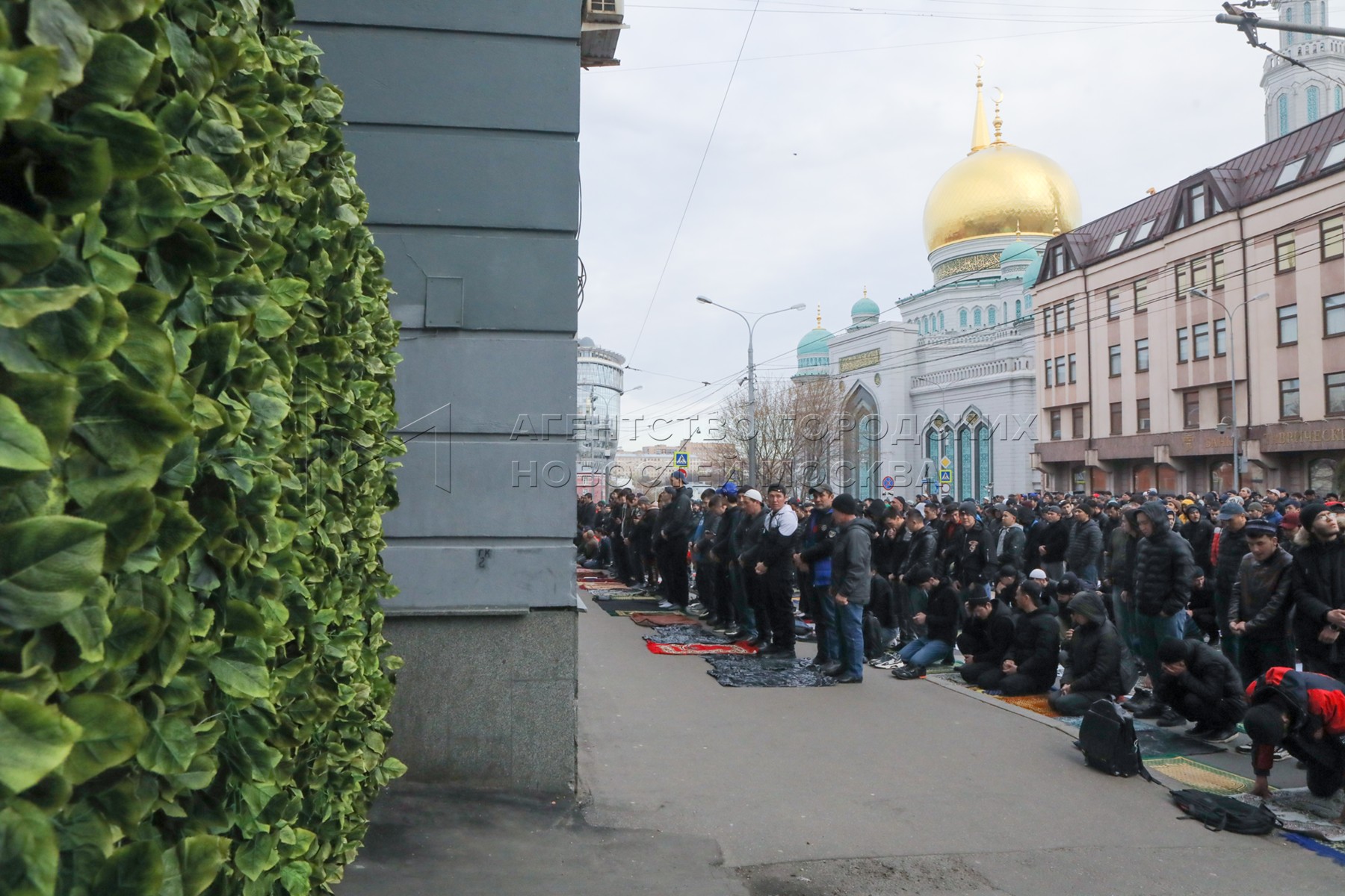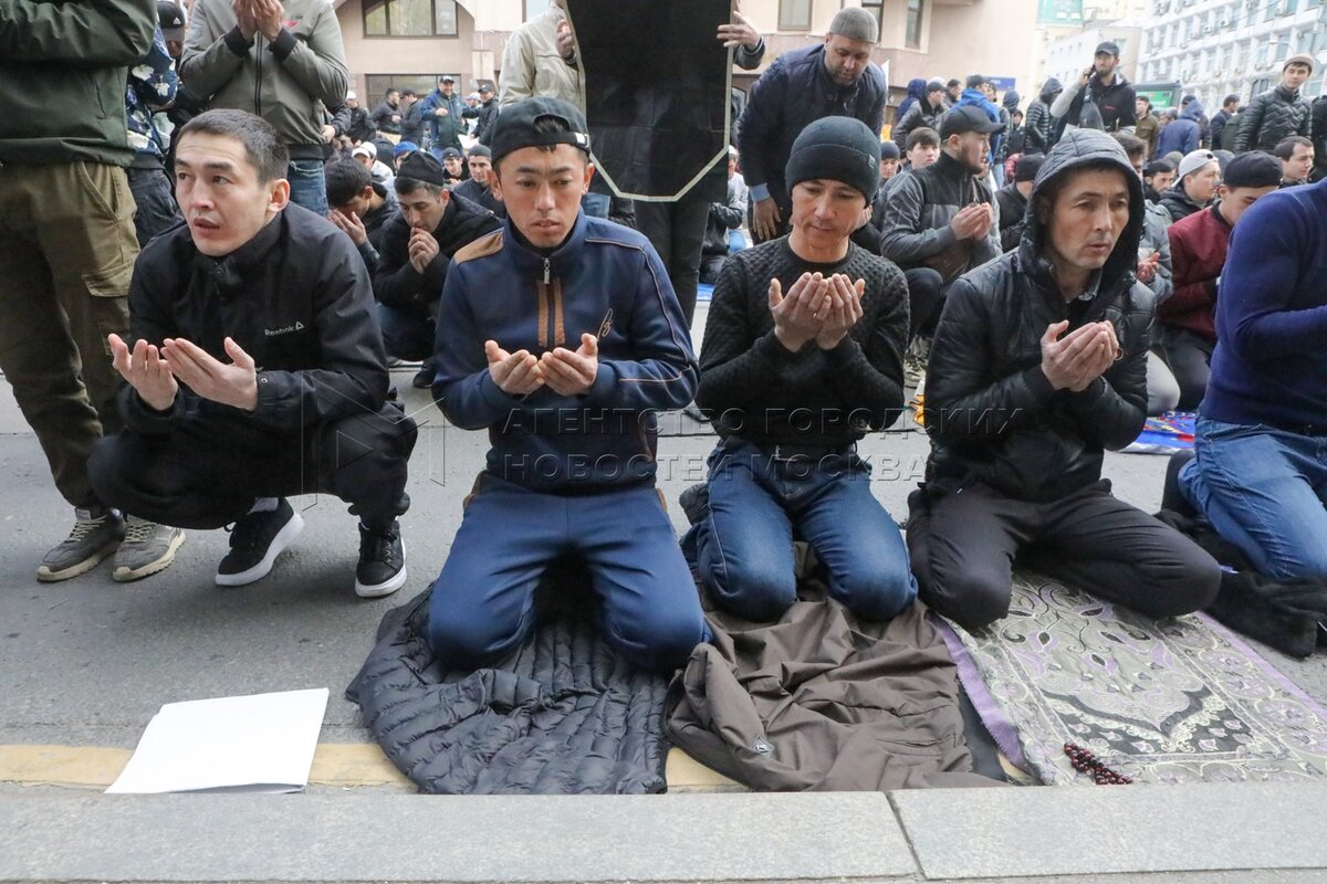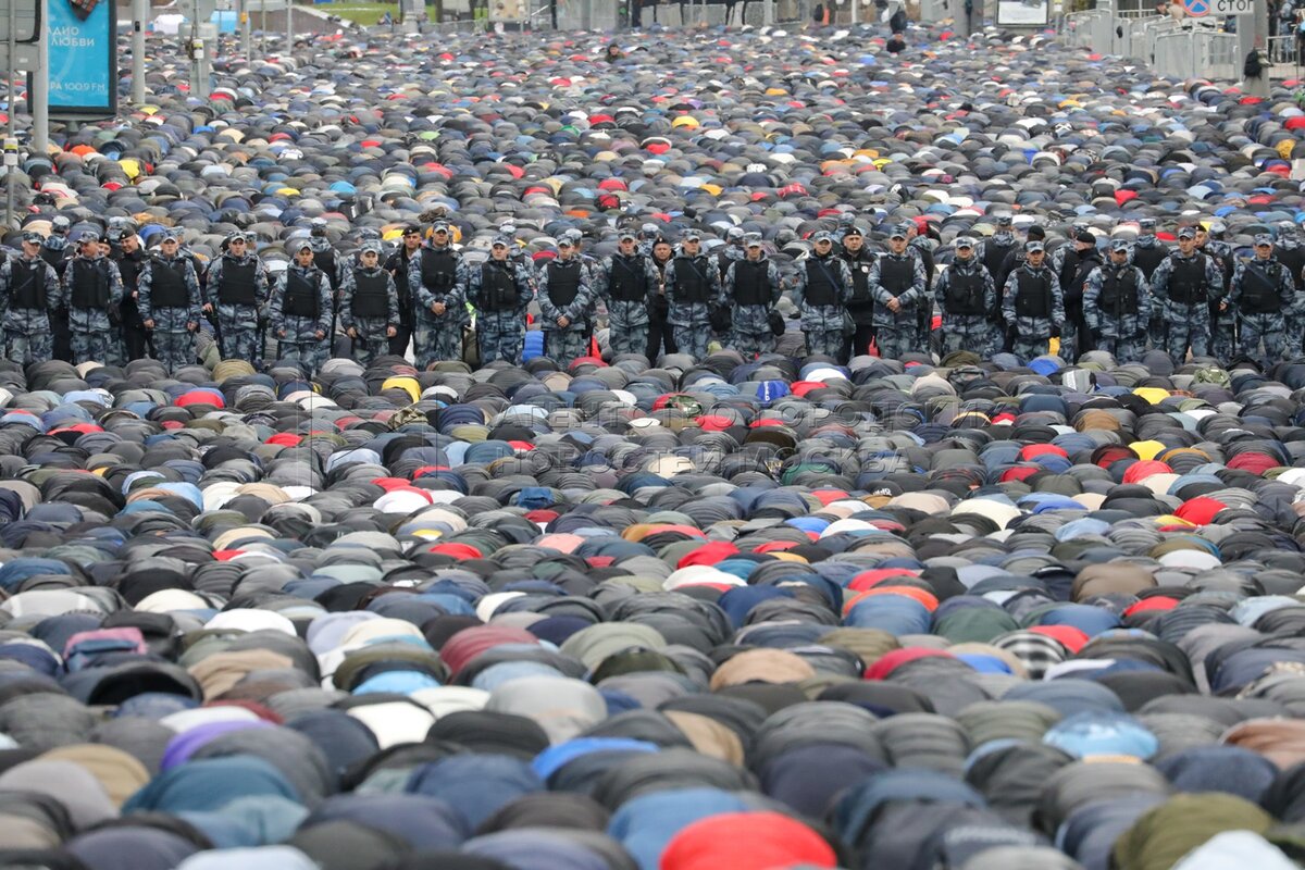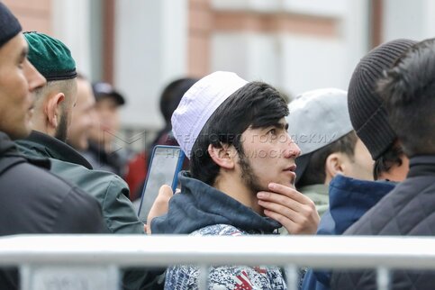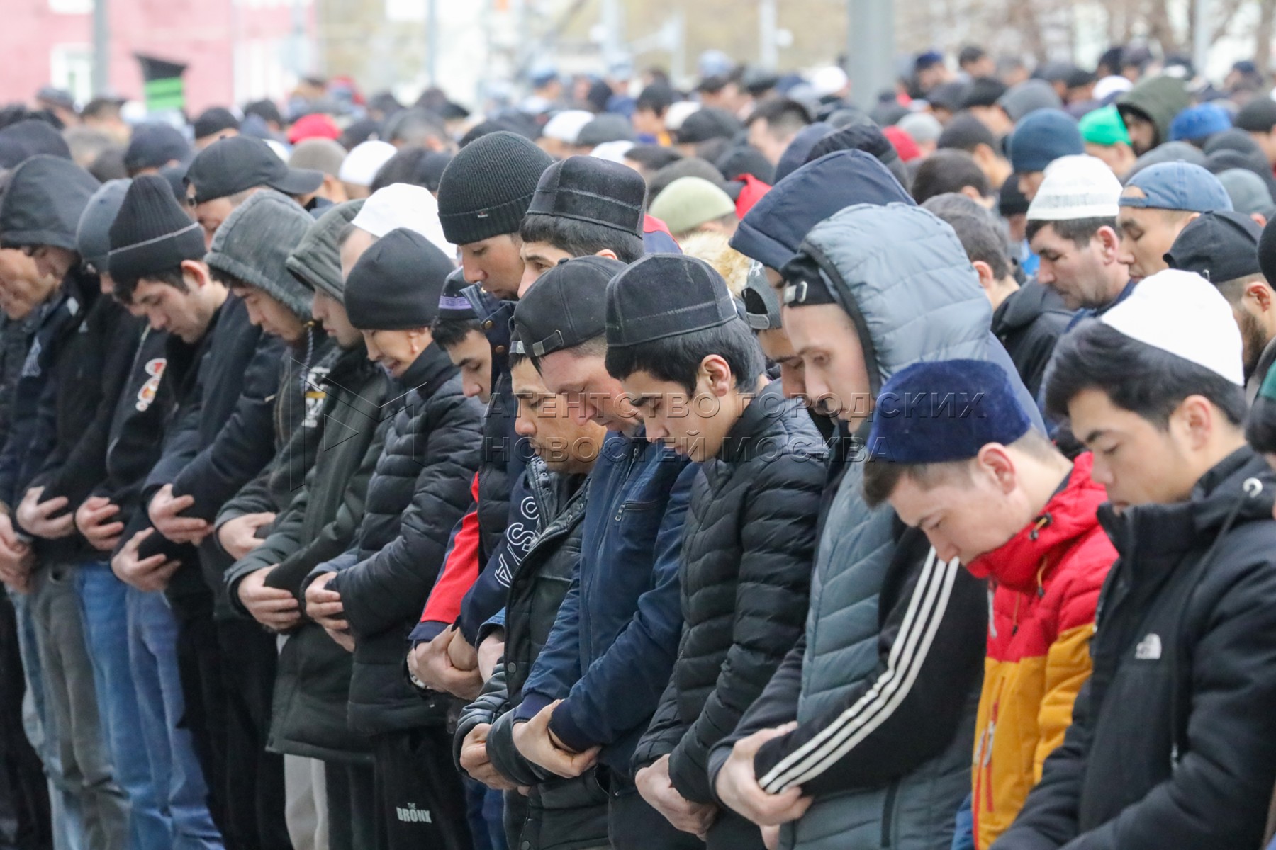 • Описание: Мусульмане во время торжественного намаза по случаю праздника Ураза-байрам у Соборной мечети.