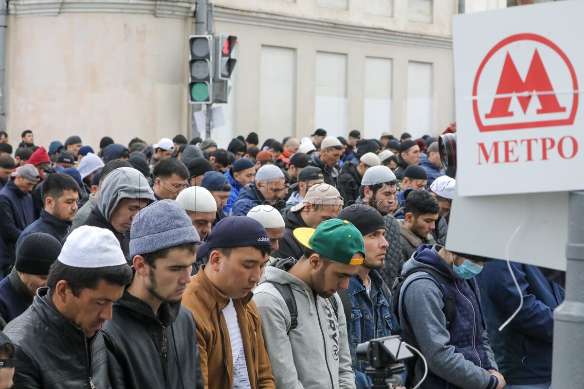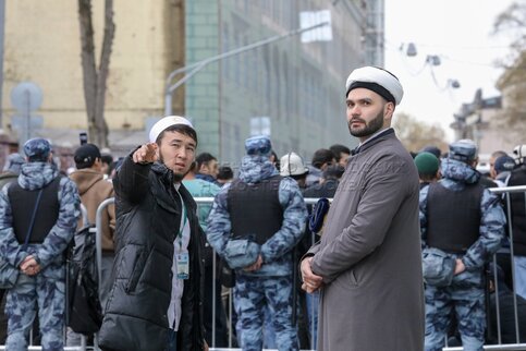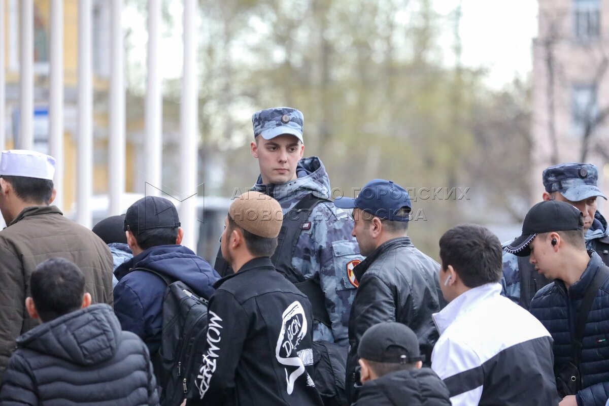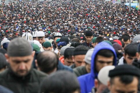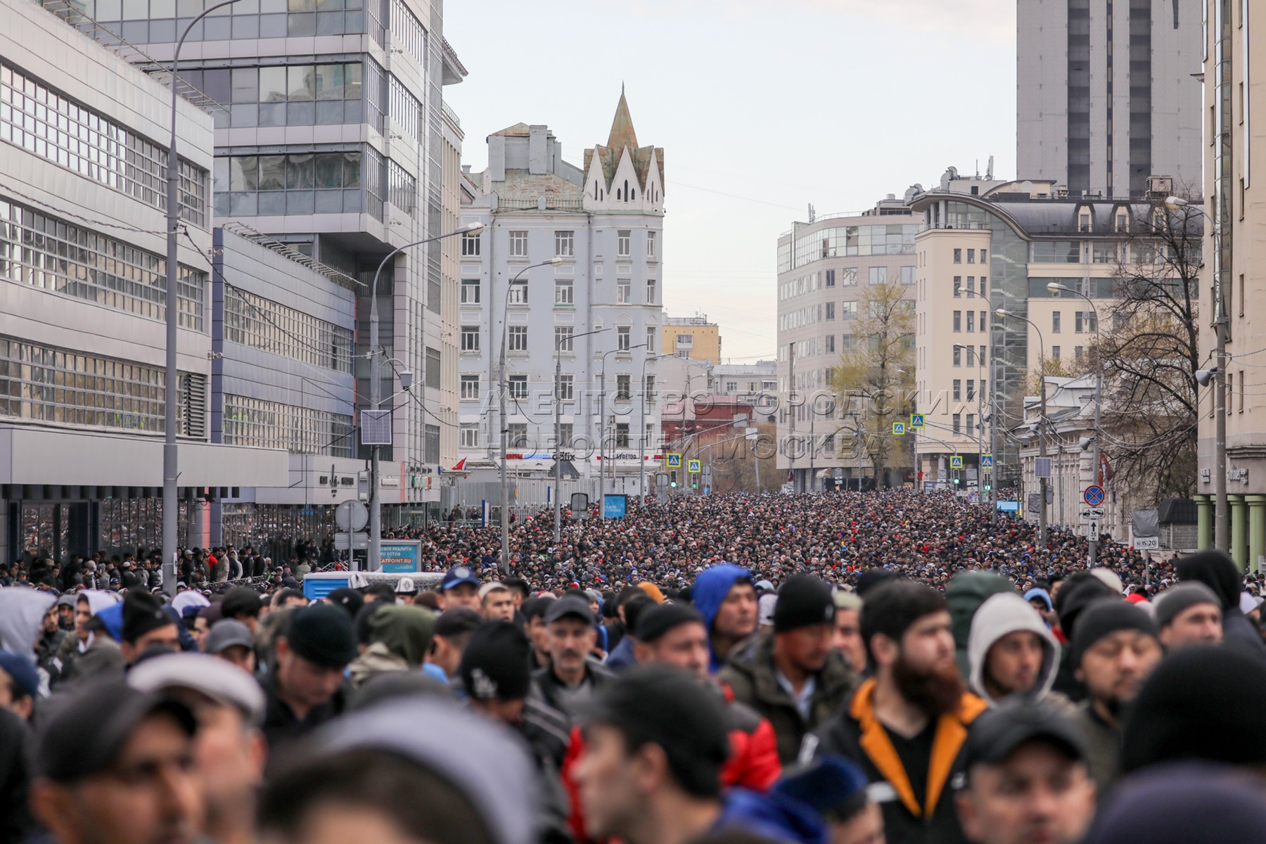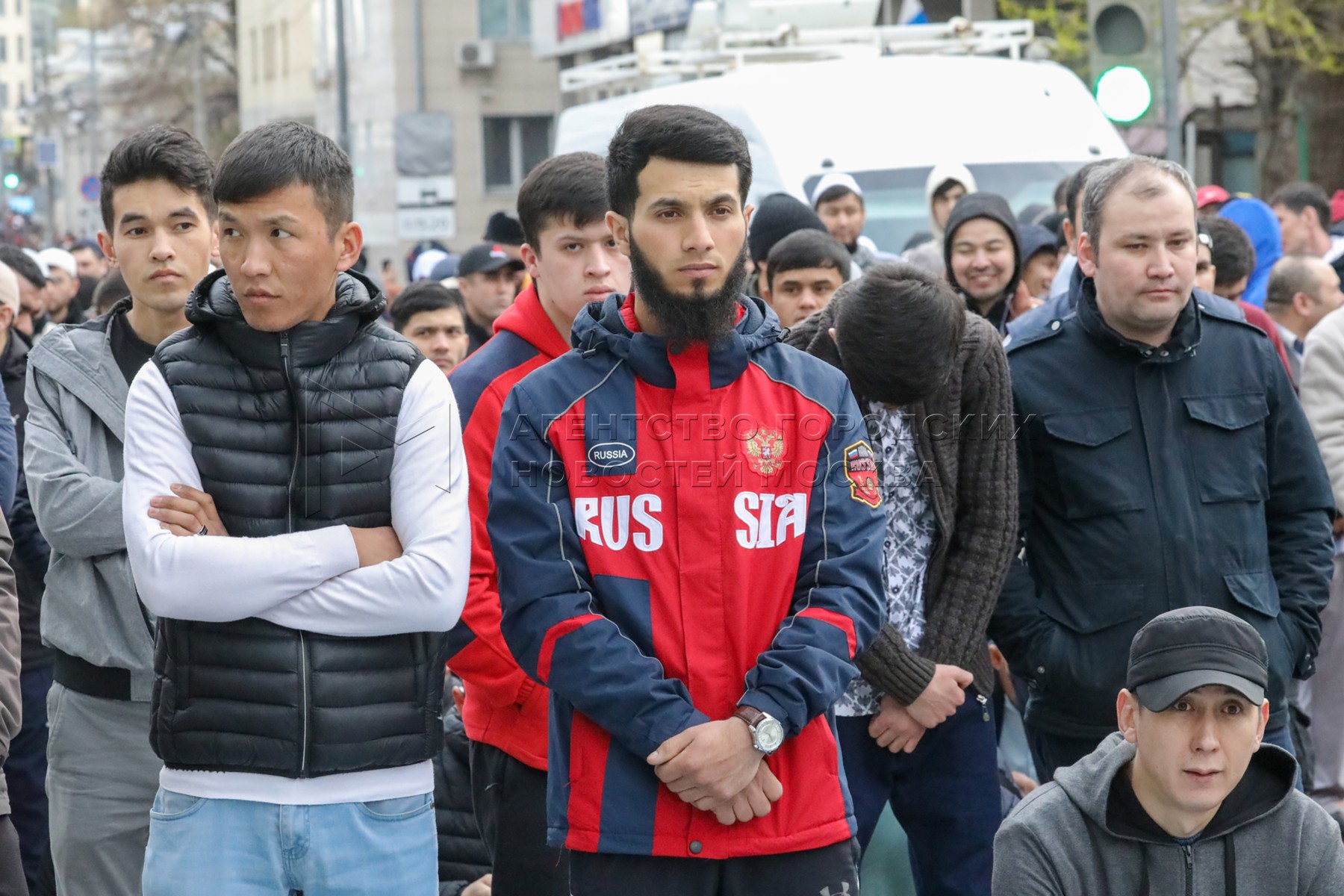 • Описание: Мусульмане во время торжественного намаза по случаю праздника Ураза-байрам у Соборной мечети.