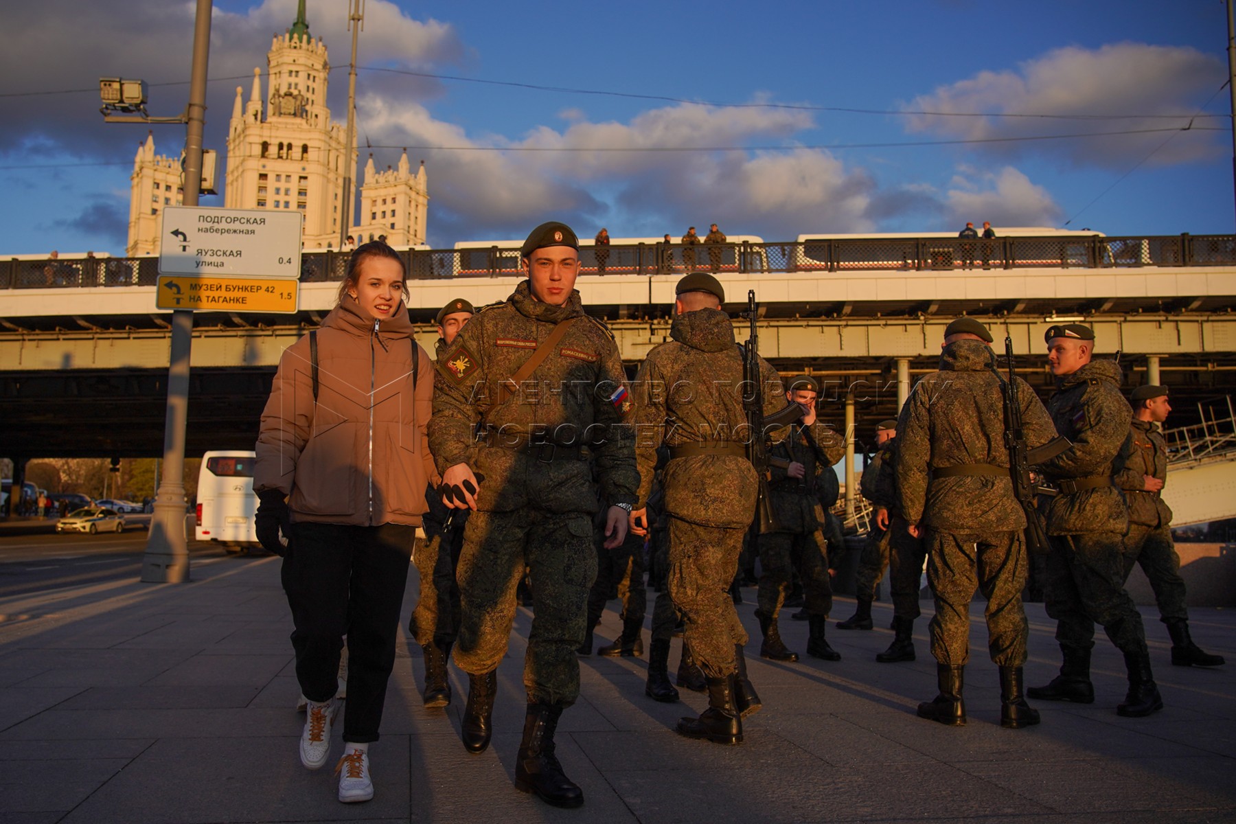 • Описание: Военнослужащие во время репетиции парадных расчетов в Москве перед военным парадом, посвященным 77-й годовщине Победы в Великой Отечественной войне.