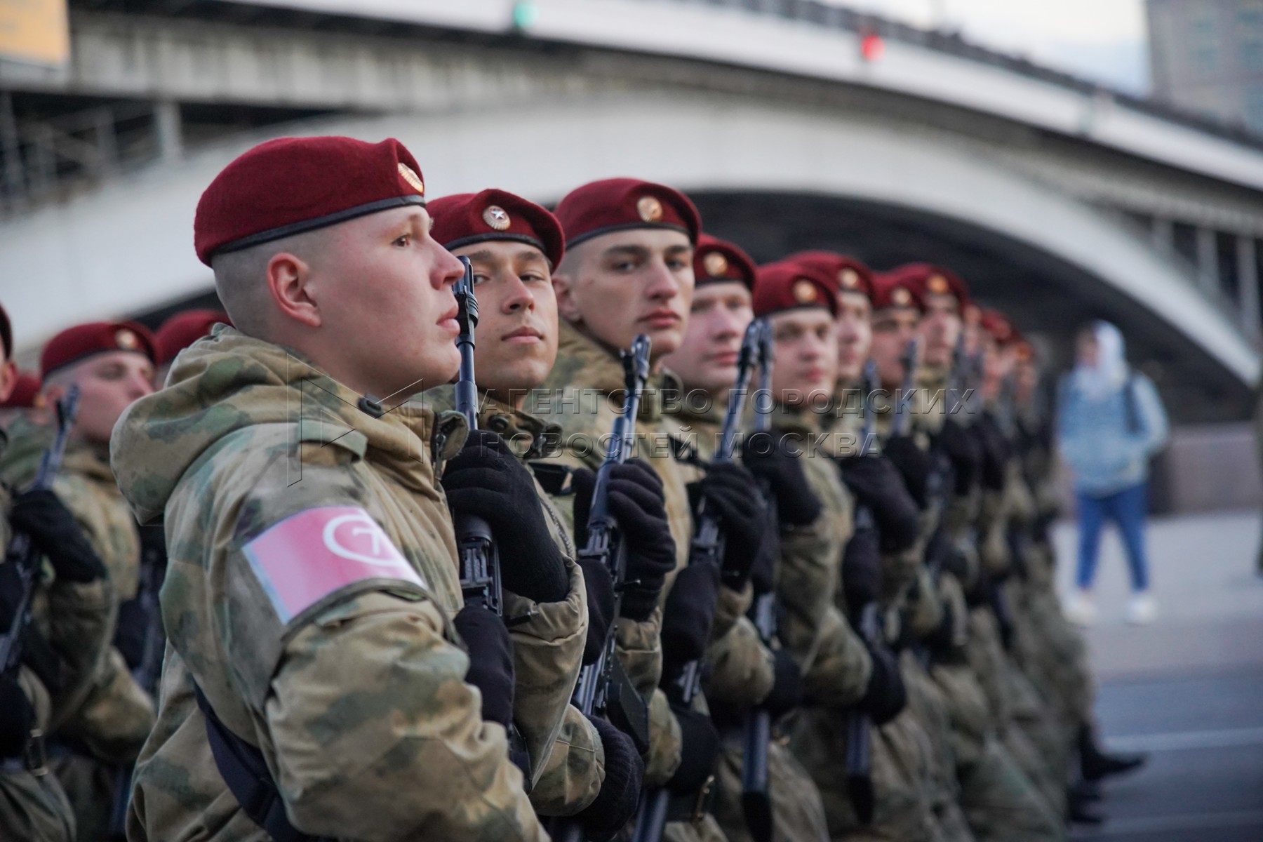 Военнослужащие во время репетиции парадных расчетов в Москве перед военным парадом, посвященным 77-й годовщине Победы в Великой Отечественной войне.