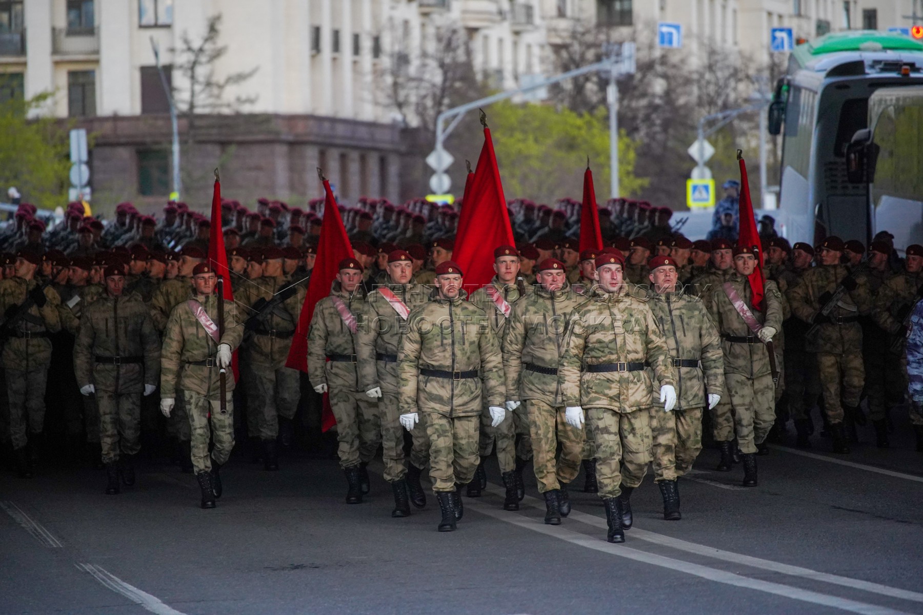 • Описание: Военнослужащие во время репетиции парадных расчетов в Москве перед военным парадом, посвященным 77-й годовщине Победы в Великой Отечественной войне.