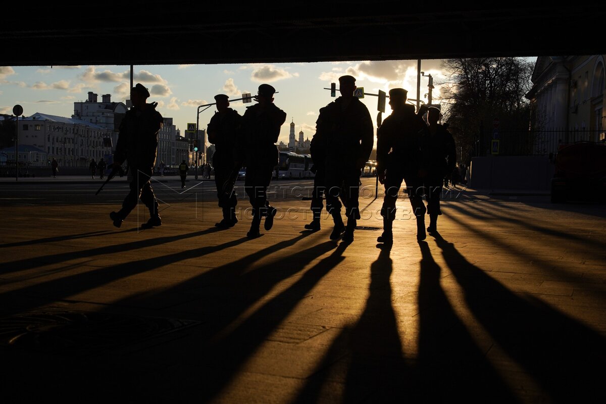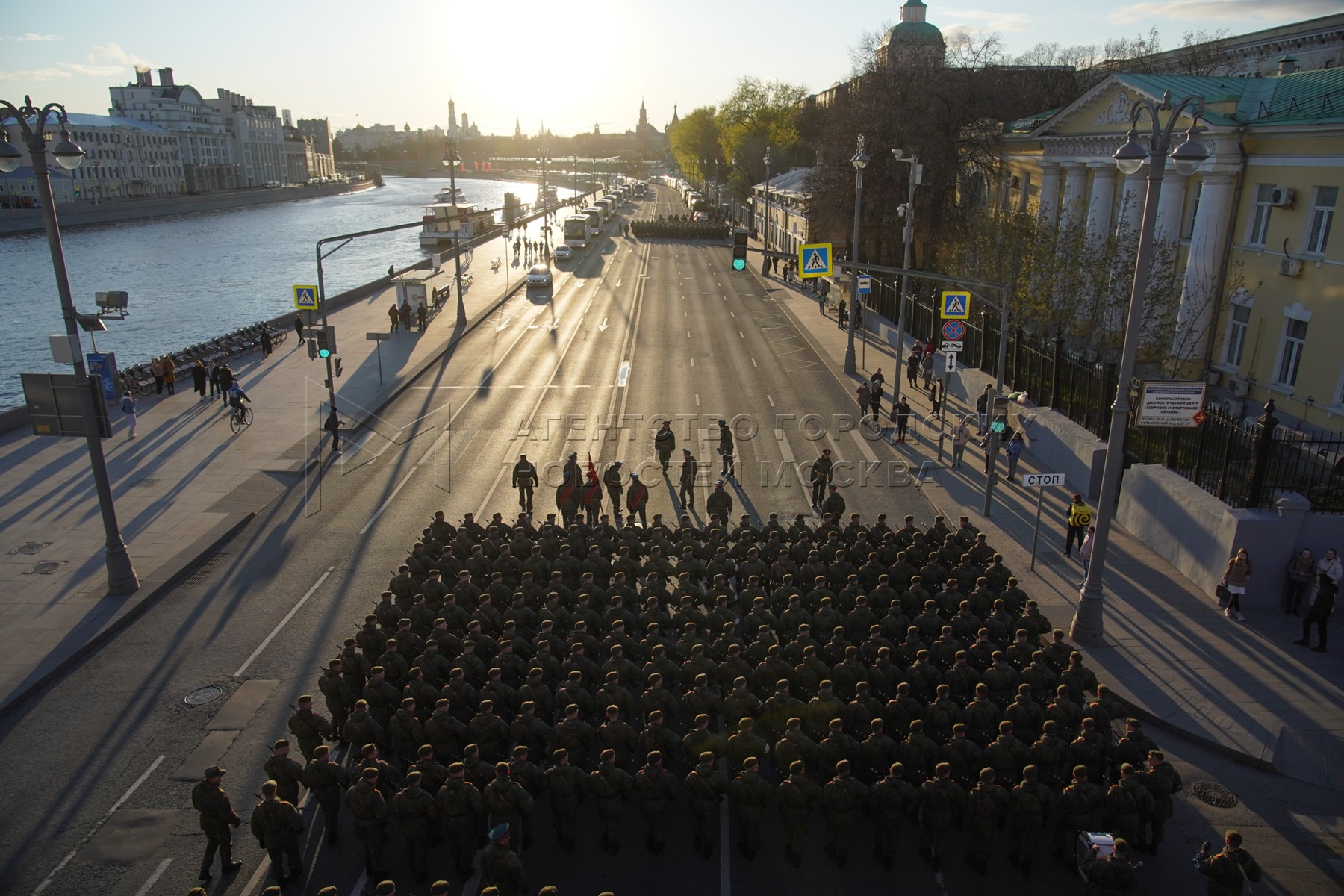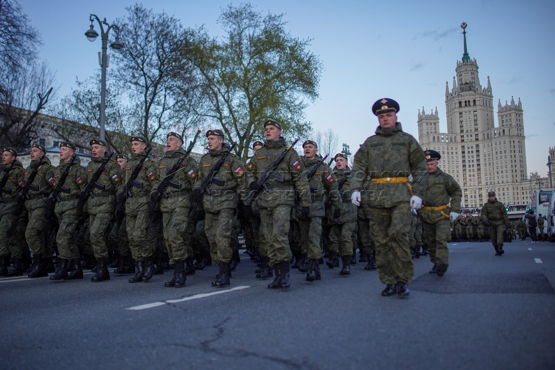 • Описание: Военнослужащие во время репетиции парадных расчетов в Москве перед военным парадом, посвященным 77-й годовщине Победы в Великой Отечественной войне.