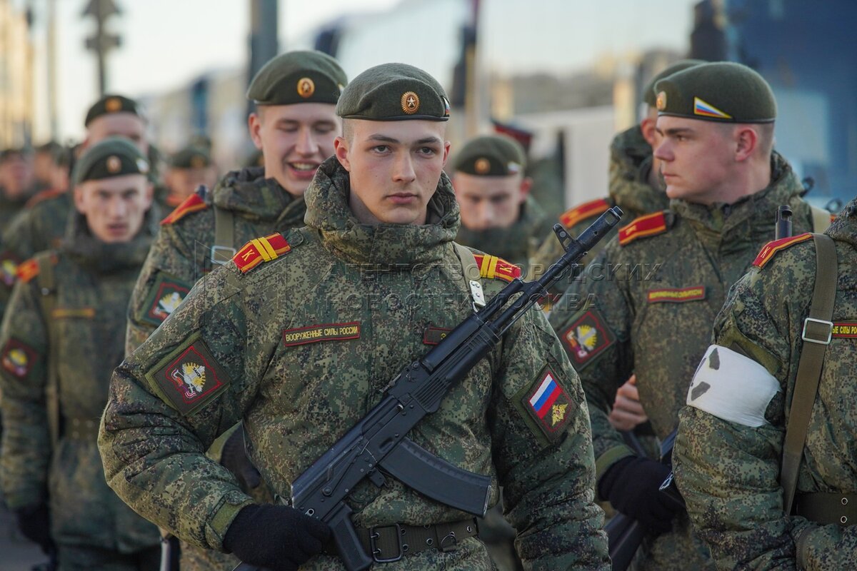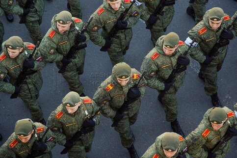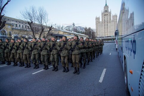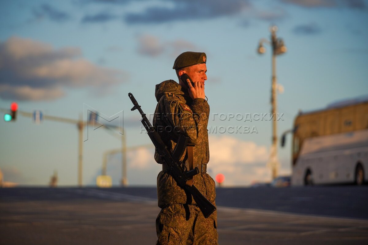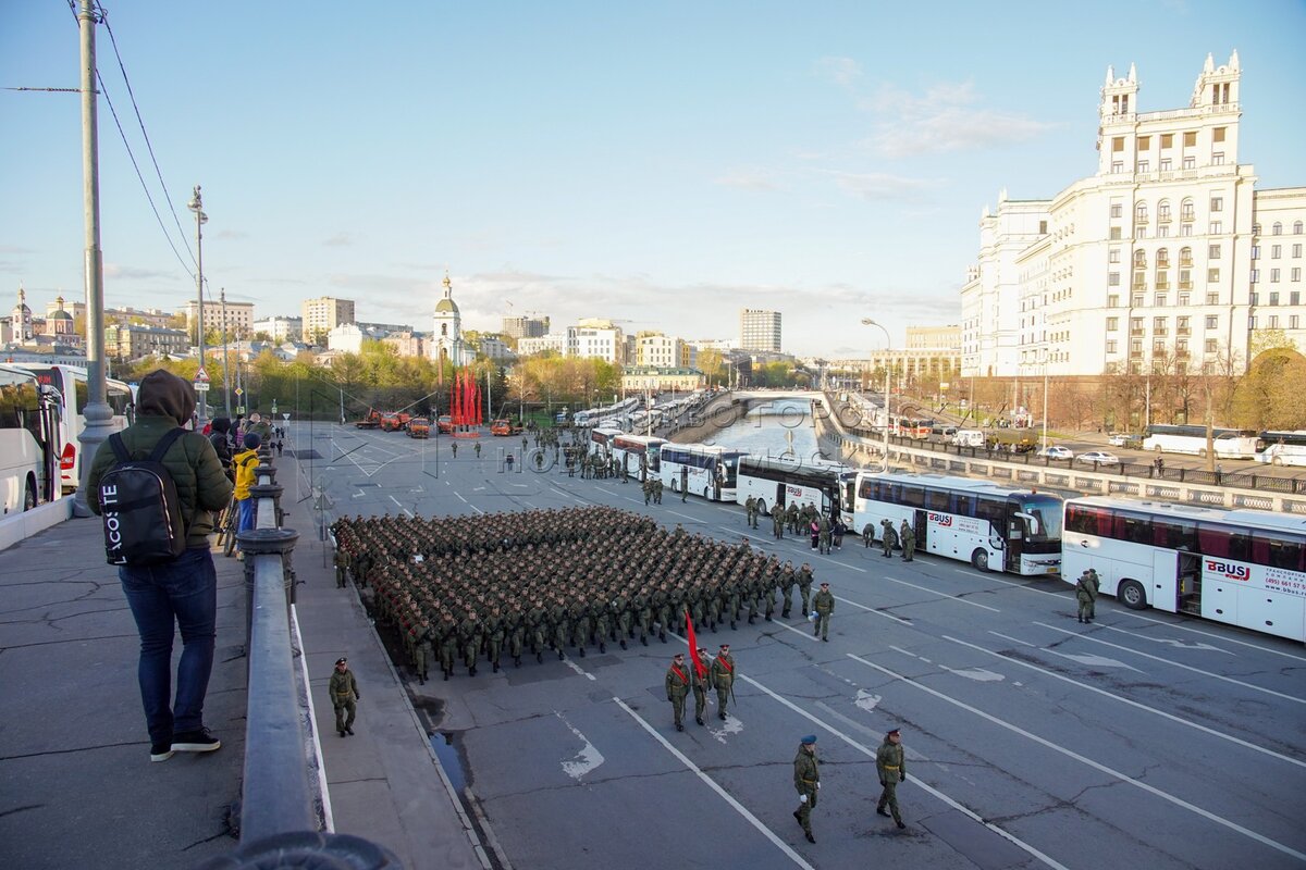 • Описание: Военнослужащие во время репетиции парадных расчетов в Москве перед военным парадом, посвященным 77-й годовщине Победы в Великой Отечественной войне.