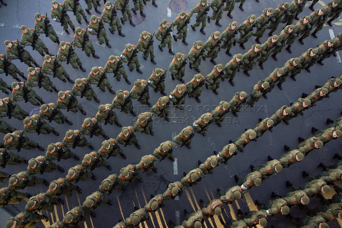 Военнослужащие во время репетиции парадных расчетов в Москве перед военным парадо...